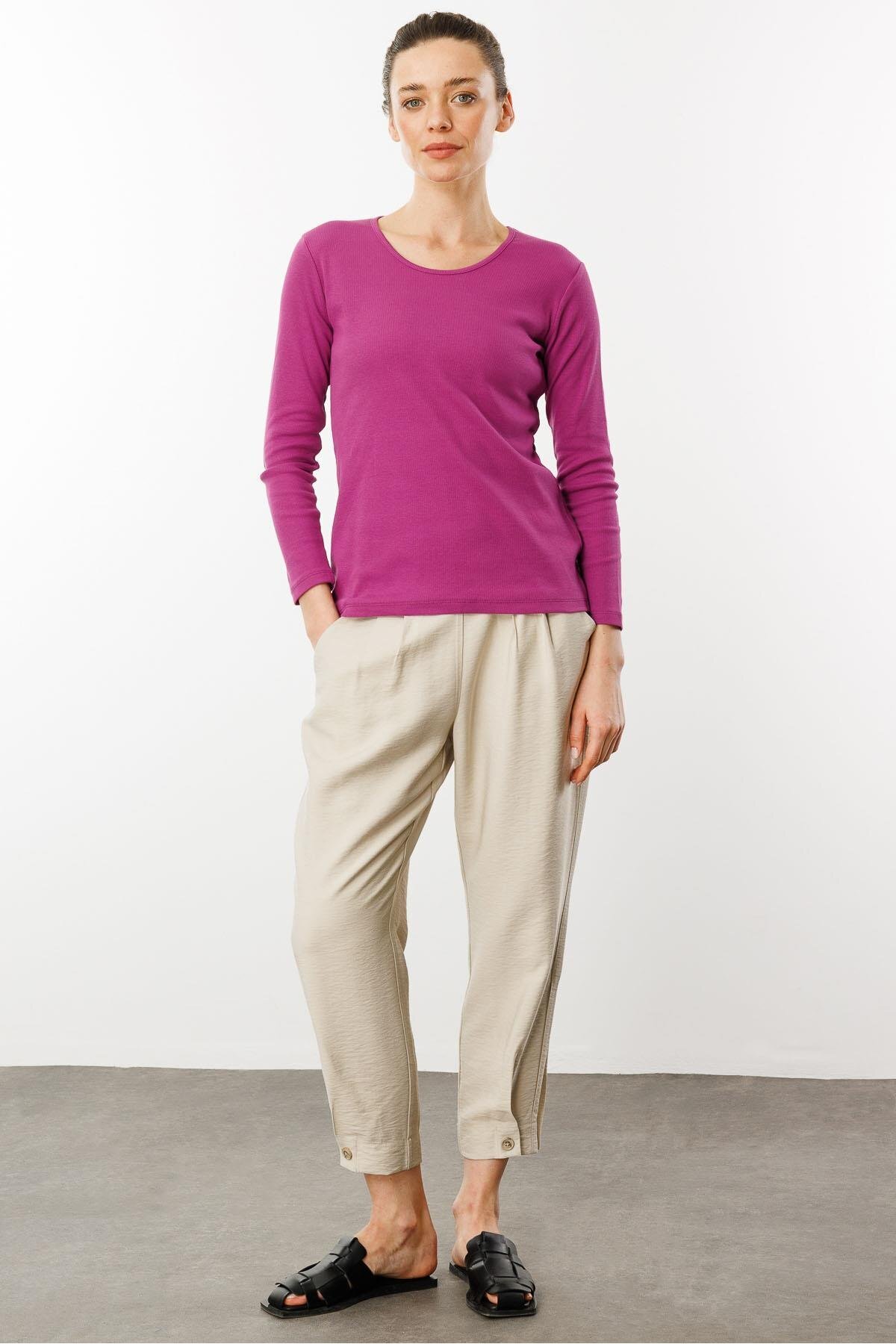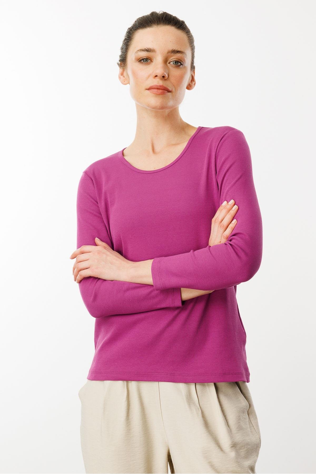 Kadın Sıfır Yaka Uzun Kol Basic Pamuklu Bluz Sıklamen Kadın Sıfır Yaka Uzun Kol Basic Pamuklu Bluz Sıklamen 23756 XL
