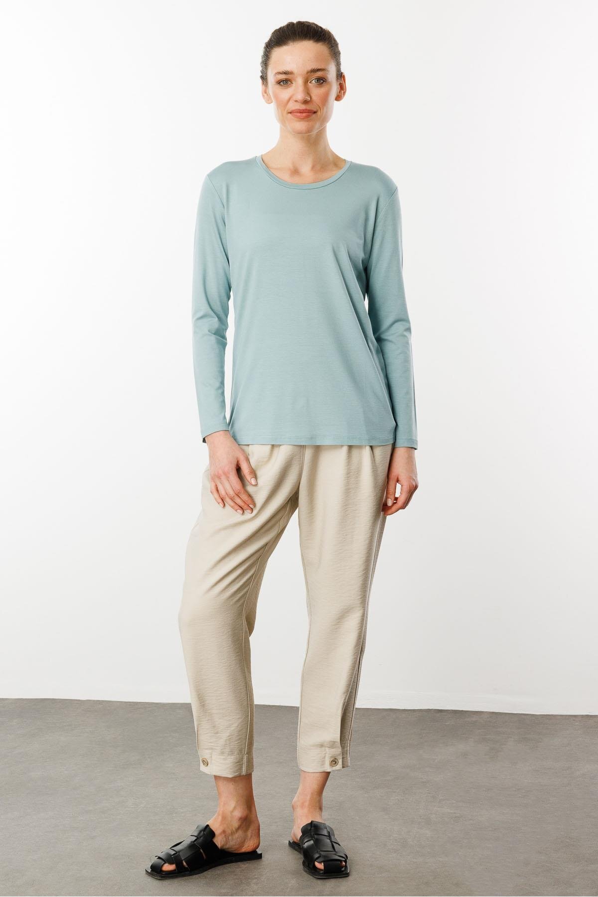 Kadın Sıfır Yaka Basic Penye Bluz Mint Kadın Sıfır Yaka Basic Penye Bluz Mint 23787 XL