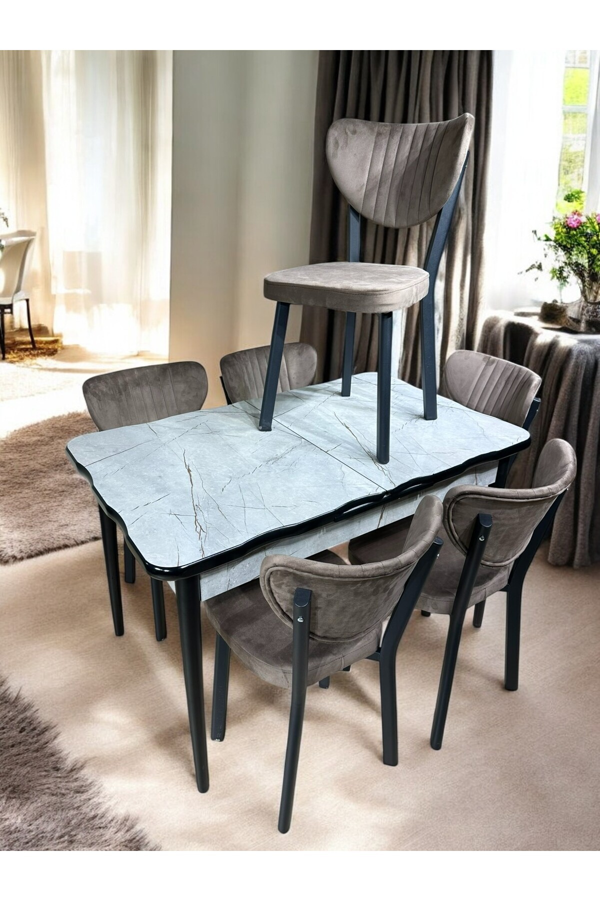 Exve Serisi 80x132 Açılabilir Siyah Mermer Desen Masa Takımı ve 6 Gri Sandalye Exve Serisi 80x132 Açılabilir Siyah Mermer Desen Masa Takımı ve 6 Gri Sandalye 22EXVE06SMR06 تک سایز