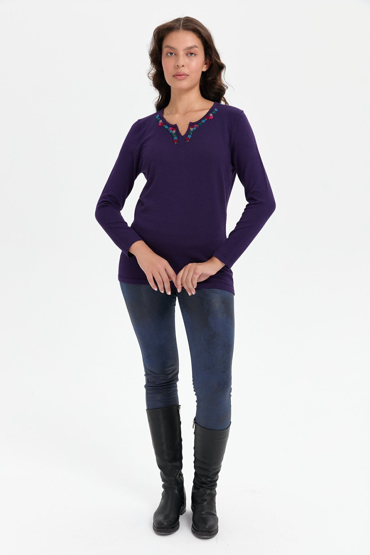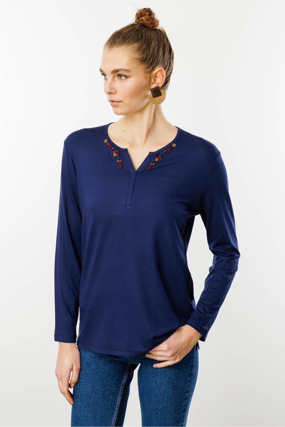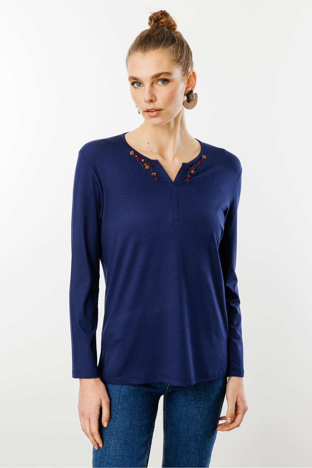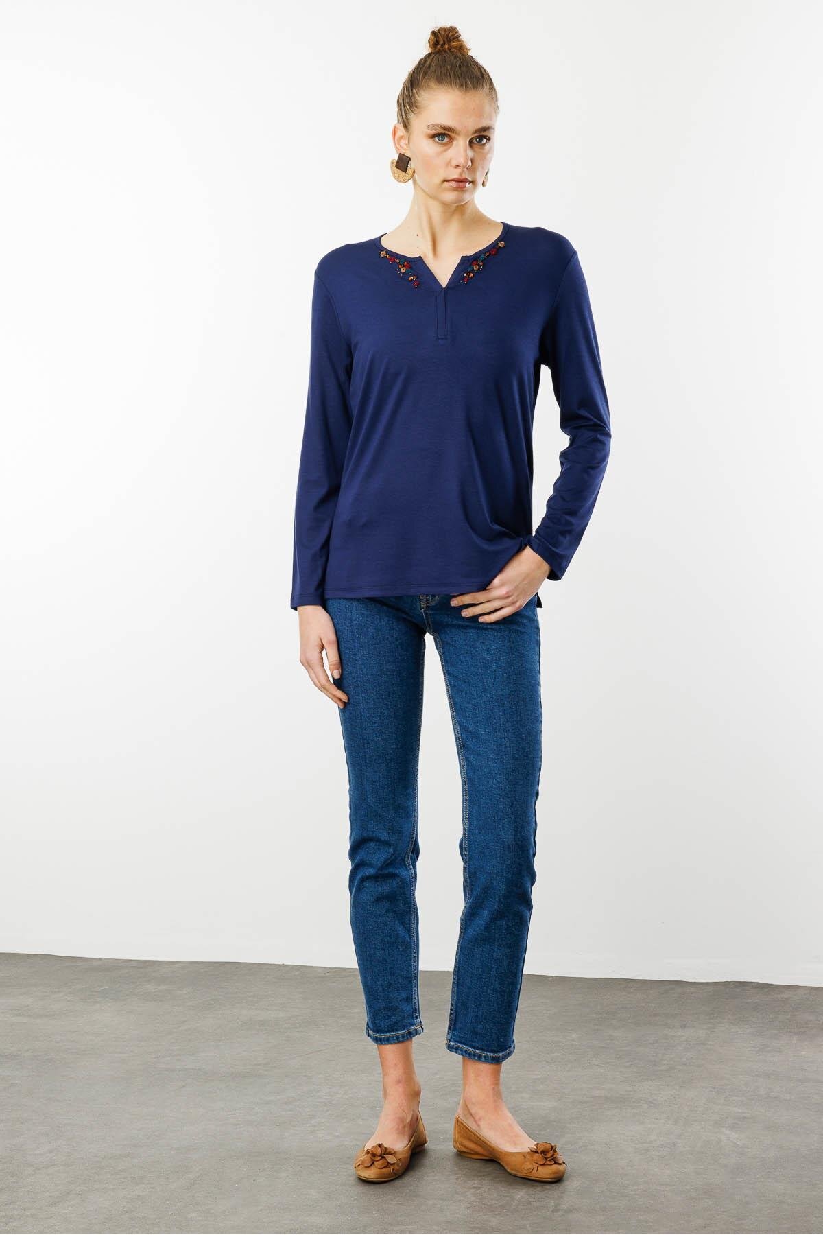 Kadın Sıfır Yaka El Nakışı İşlemeli Bluz Lacivert Kadın Sıfır Yaka El Nakışı İşlemeli Bluz Lacivert 25705 XL