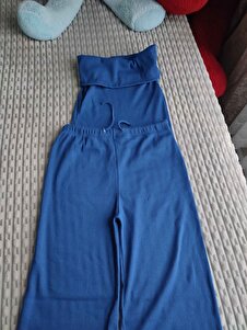 Kadın Mavi Madonna Yaka Bluz Bol Paça Pantolon Alt Üst Takım Kadın Mavi Madonna Yaka Bluz Bol Paça Pantolon Alt Üst Takım mdntkm L