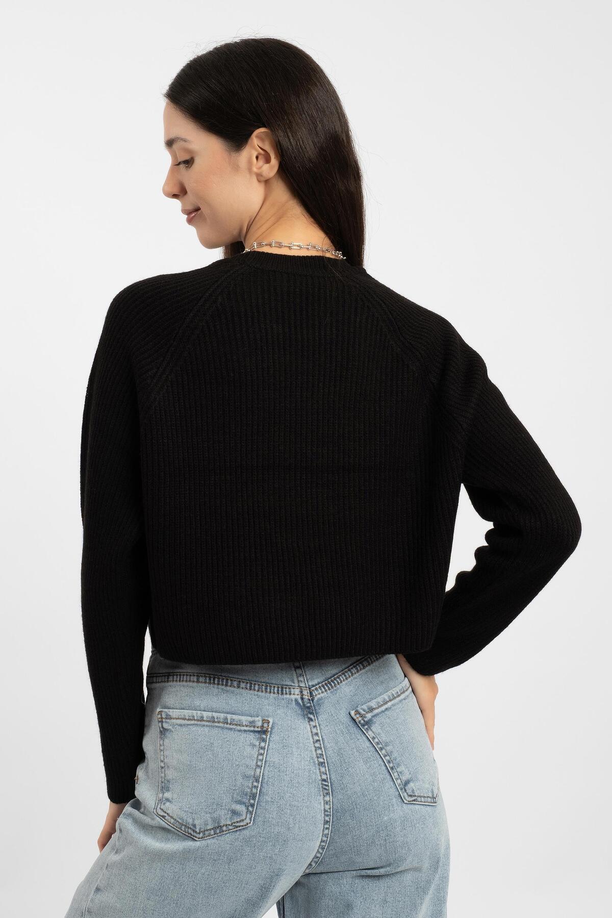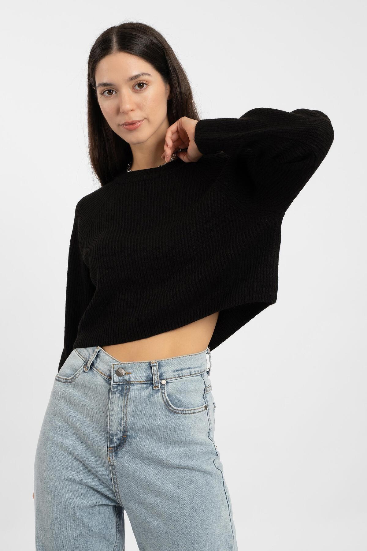 Kadın Crop Rahat Kalıp Bisiklet Yaka Triko Kazak Siyah Kadın Crop Rahat Kalıp Bisiklet Yaka Triko Kazak Siyah KÖ-K-001-01 XL