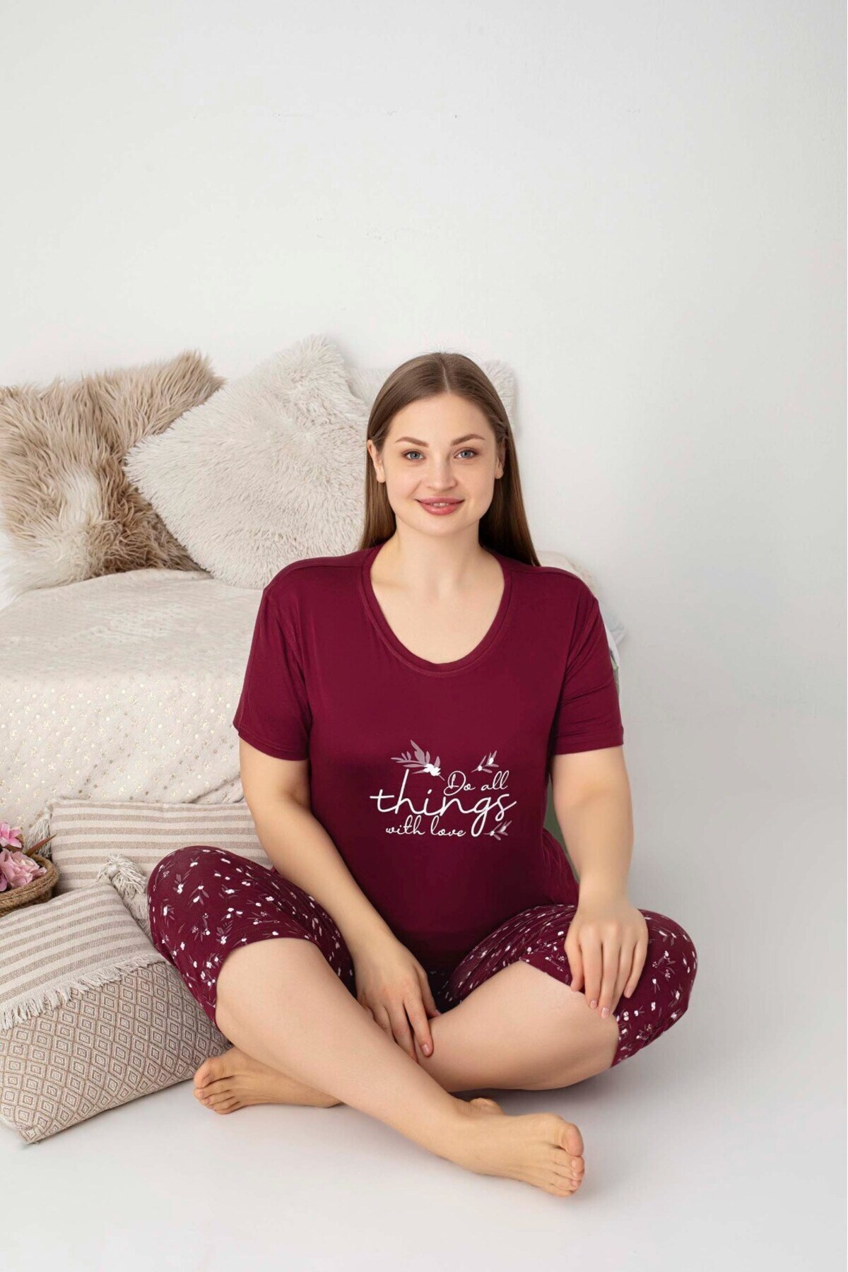 Kadın Bordo Bisiklet Yaka Düğmesiz Battal Kesim Viskon Kısa Kol Kapri Cepli Büyük Beden Pijama Takım Kadın Bordo Bisiklet Yaka Düğmesiz Battal Kesim Viskon Kısa Kol Kapri Cepli Büyük Beden Pijama Takım PRA-12646647-966856 5XL
