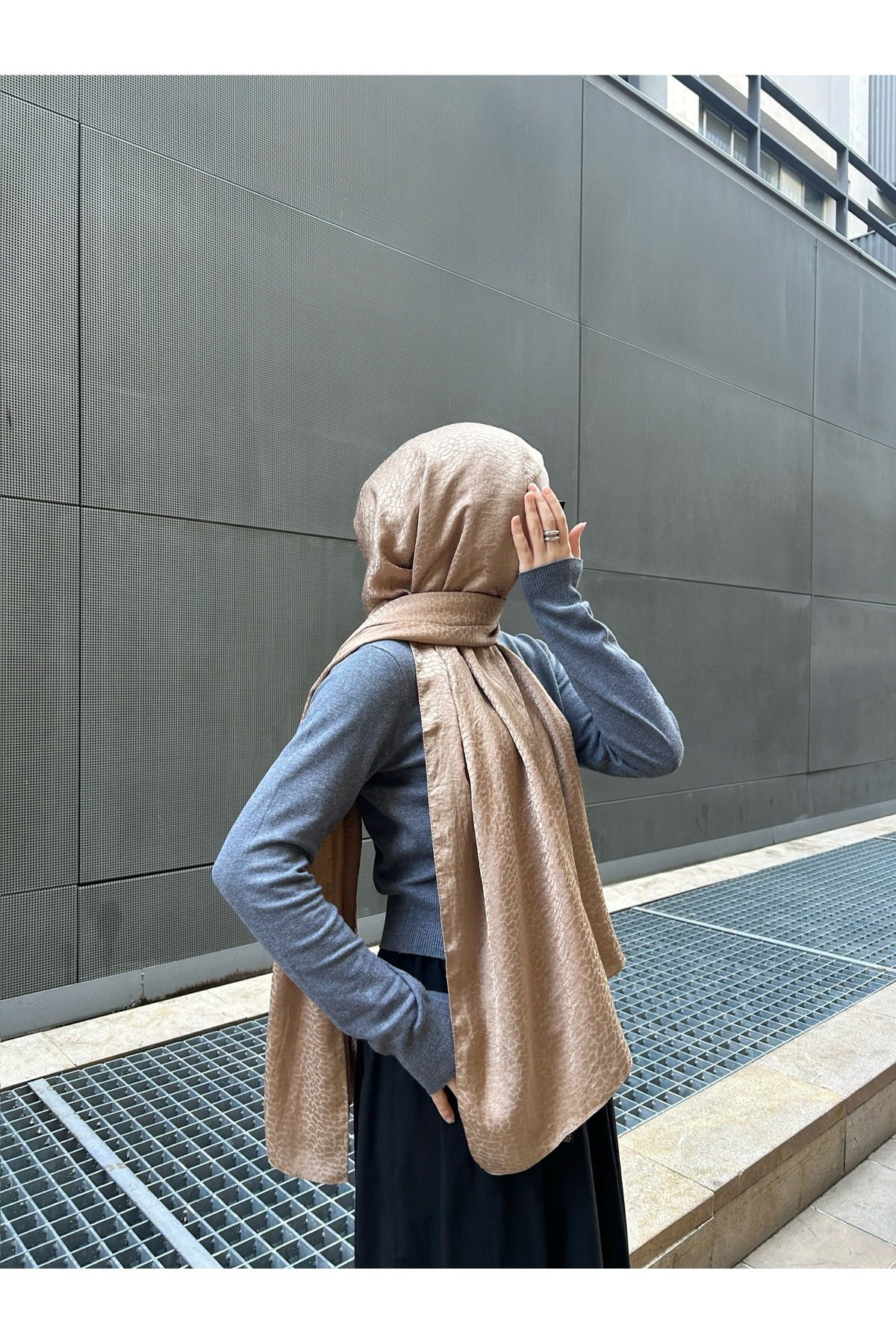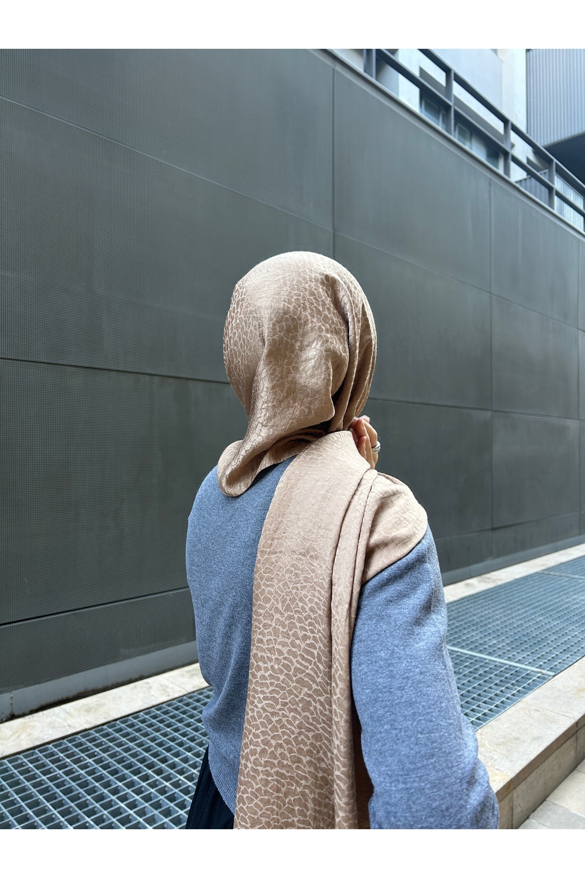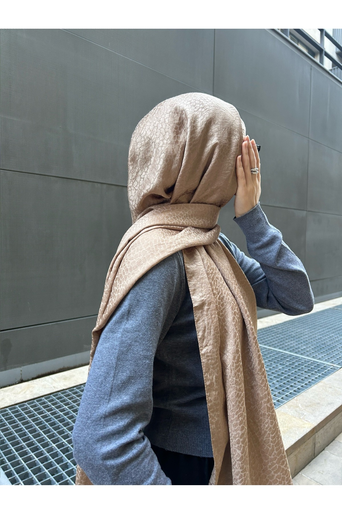 Taş Desen Pamuklu Jakar Şal-Vizon Taş Desen Pamuklu Jakar Şal-Vizon 00143-Vizon 75 x 190