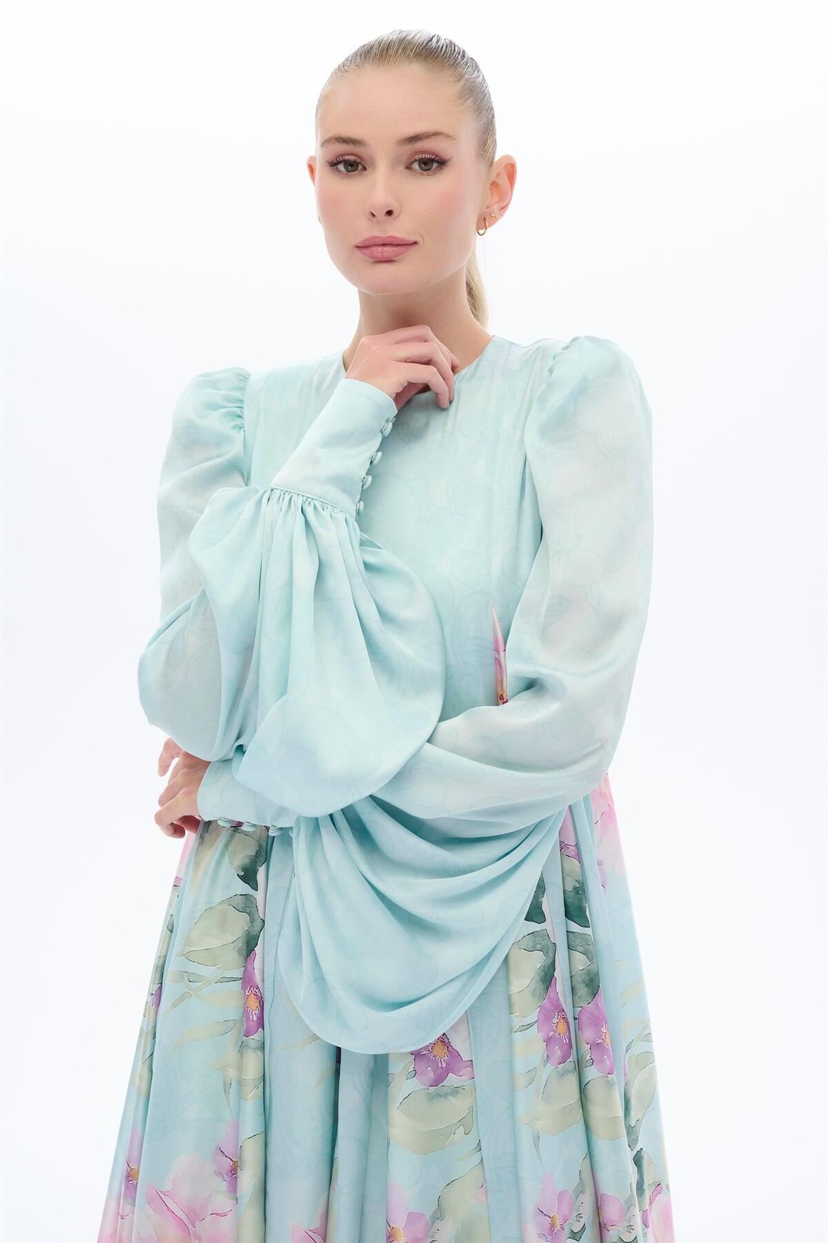 ARASI ÇİÇEK DESENLİ PARÇALI ELBİSE Mint ARASI ÇİÇEK DESENLİ PARÇALI ELBİSE Mint MH06.352 L