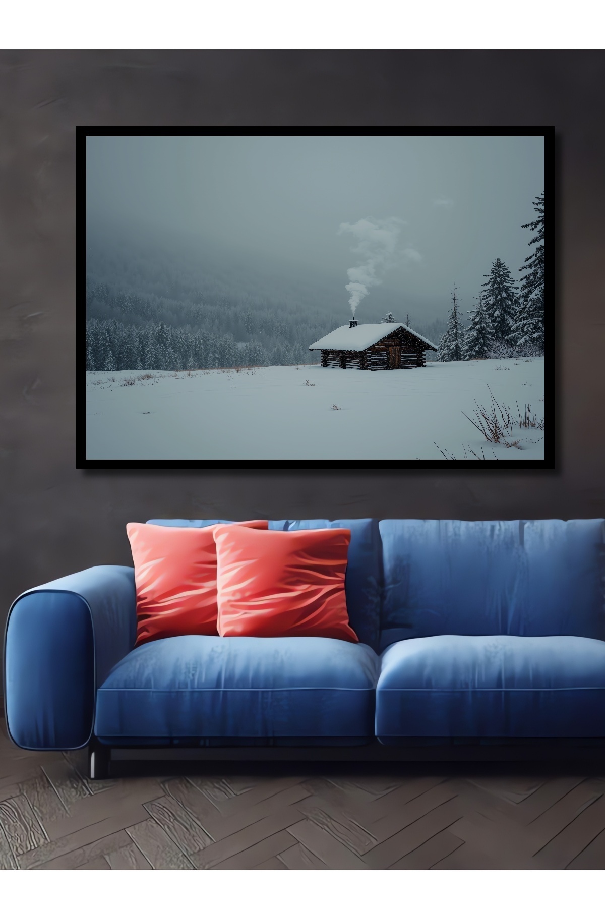 Kar Manzaralı Dağ Evin Büyülü Atmosferi Dekoratif Ahşap Ev/İşyeri/Ofis Kare Tablo Kar Manzaralı Dağ Evin Büyülü Atmosferi Dekoratif Ahşap Ev/İşyeri/Ofis Kare Tablo hknsdtb_582_T 70 x 50