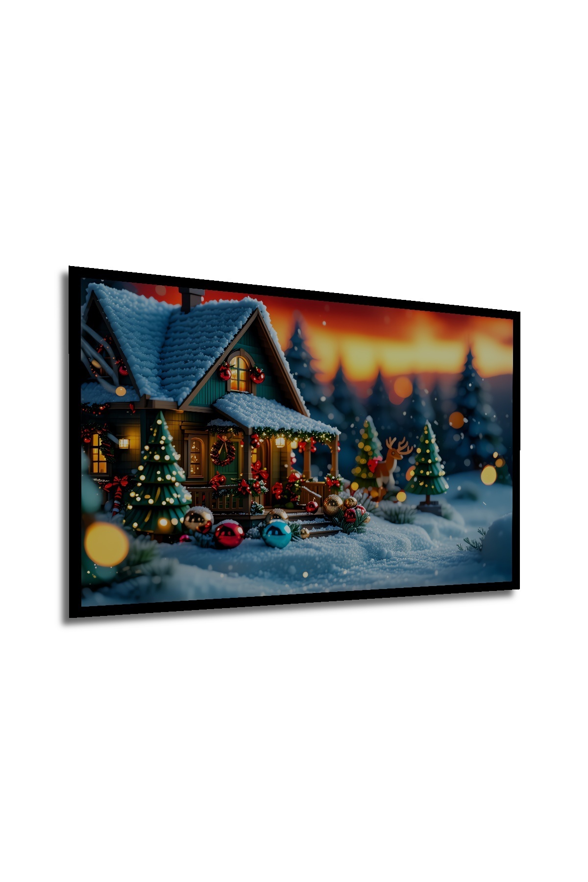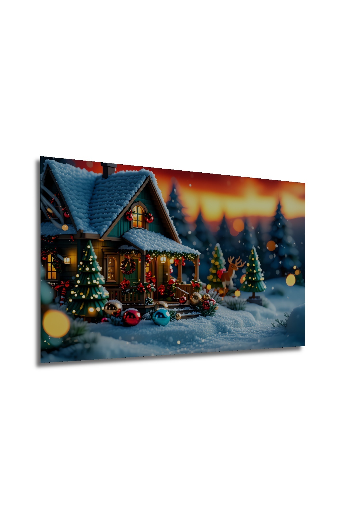 Karla Kaplı Ev ve Geyik Noel Rüyası Dekoratif Ahşap Ev/İşyeri/Ofis Kare Tablo Karla Kaplı Ev ve Geyik Noel Rüyası Dekoratif Ahşap Ev/İşyeri/Ofis Kare Tablo hknsdtb_4896_T 70 x 50