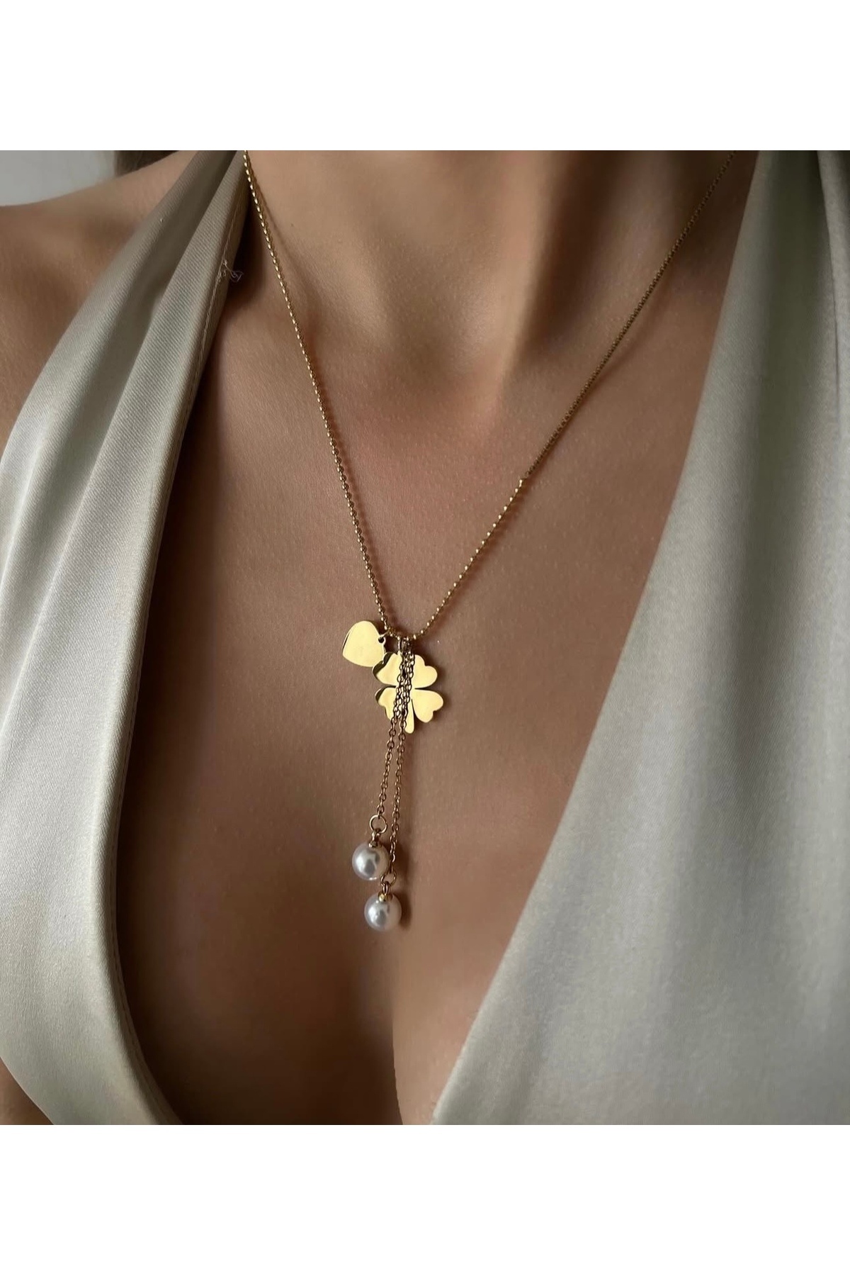 Çelik Altın Rengi İncili Kelebek Kolye Çelik Altın Rengi İncili Kelebek Kolye KLY115 45 cm