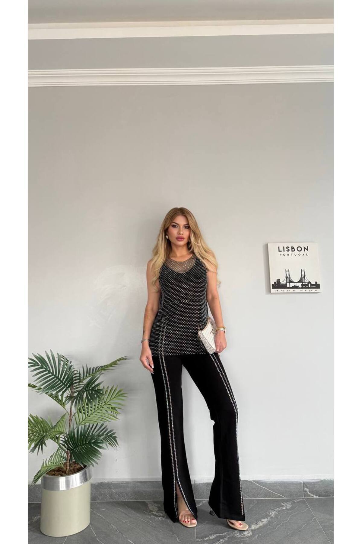 Kadın Yeni Sezon Taşlı Bluz Yandan Fermuarlı Pantolon Esnek Kompakt Kumaş 3 Lü Takım Kadın Yeni Sezon Taşlı Bluz Yandan Fermuarlı Pantolon Esnek Kompakt Kumaş 3 Lü Takım 1801 XL