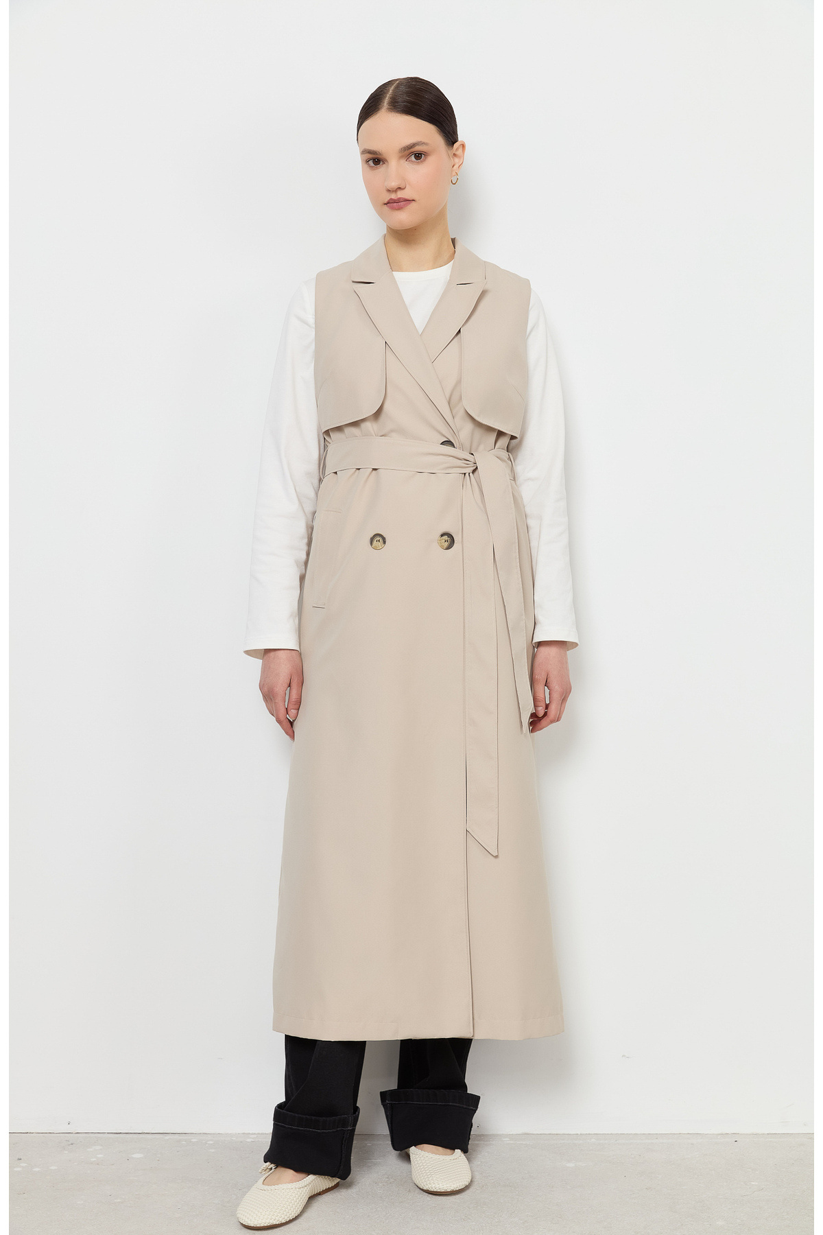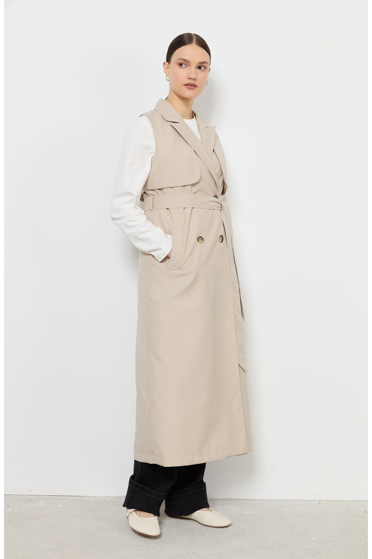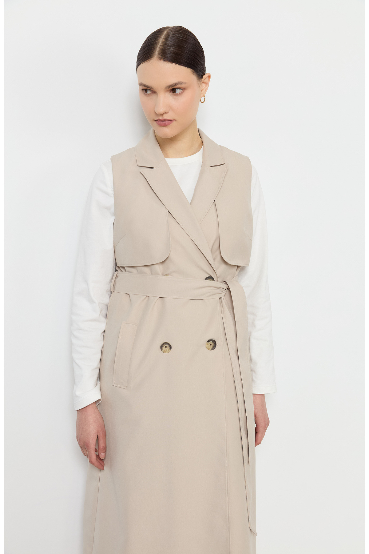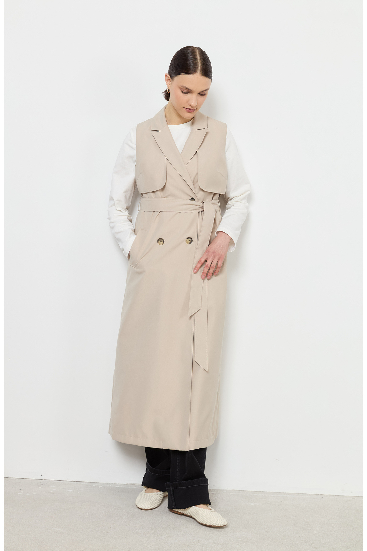 Rüzgarlıklı Maksi Taş Trenç Yelek Rüzgarlıklı Maksi Taş Trenç Yelek FA2025BS-3024 XL