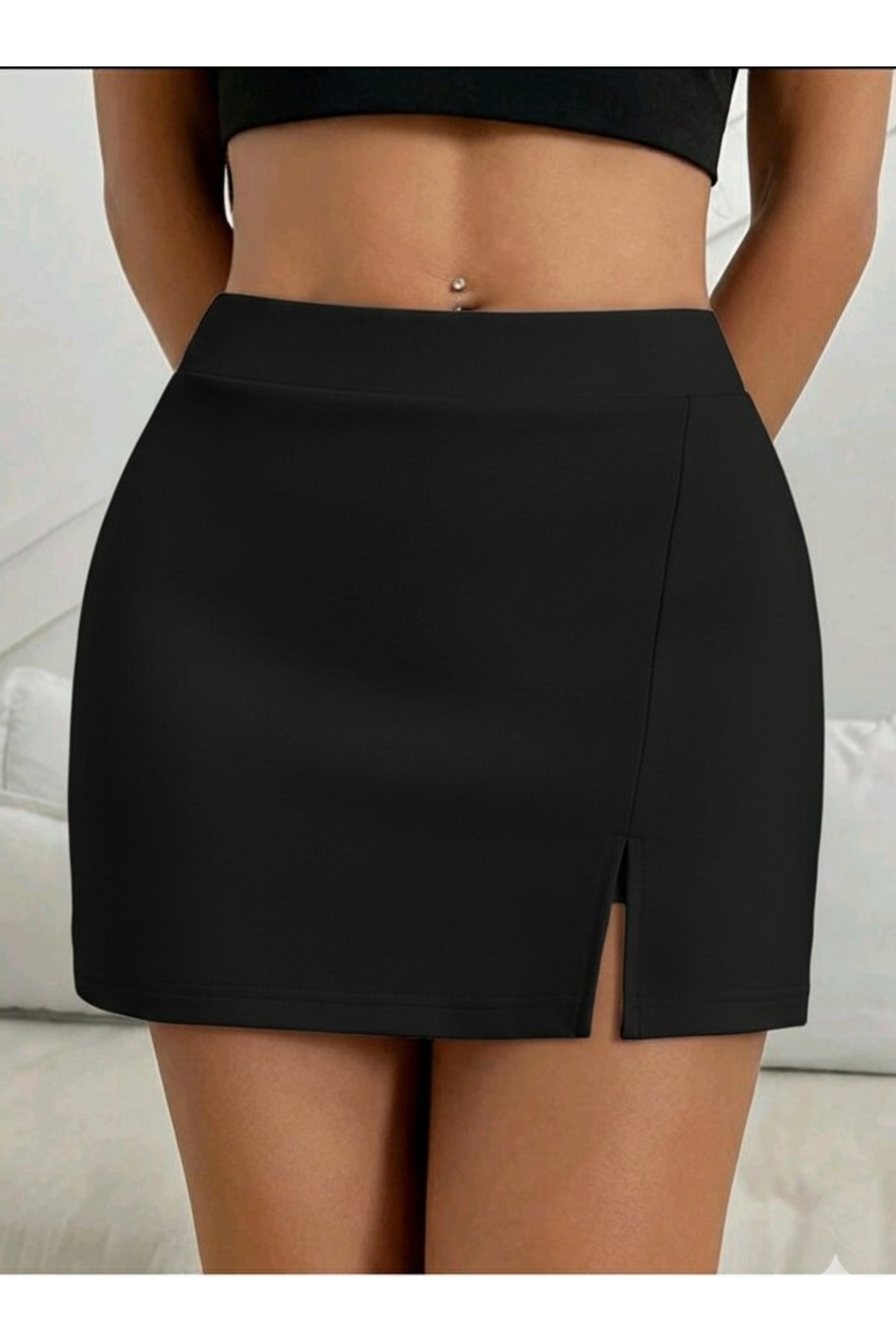 Kadın Krem Yüksek Bel Yırtmaçlı İçi Şortlu Etek Kadın Krem Yüksek Bel Yırtmaçlı İçi Şortlu Etek 1004 L