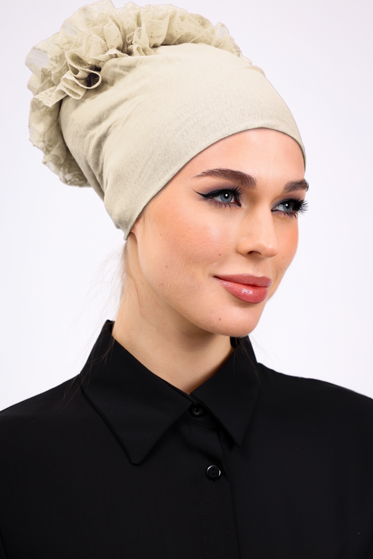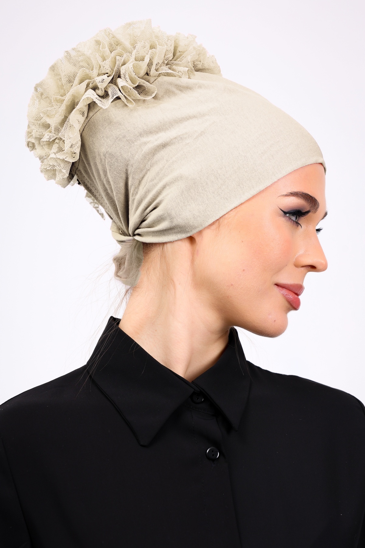 Fırfırlı Krem Dikişsiz Penye Bone Kadın Tesettür Bağlamalı Iç Bone (TAŞ RENGİ - BEJ) Fırfırlı Krem Dikişsiz Penye Bone Kadın Tesettür Bağlamalı Iç Bone (TAŞ RENGİ - BEJ) fırfırlıbone Standart