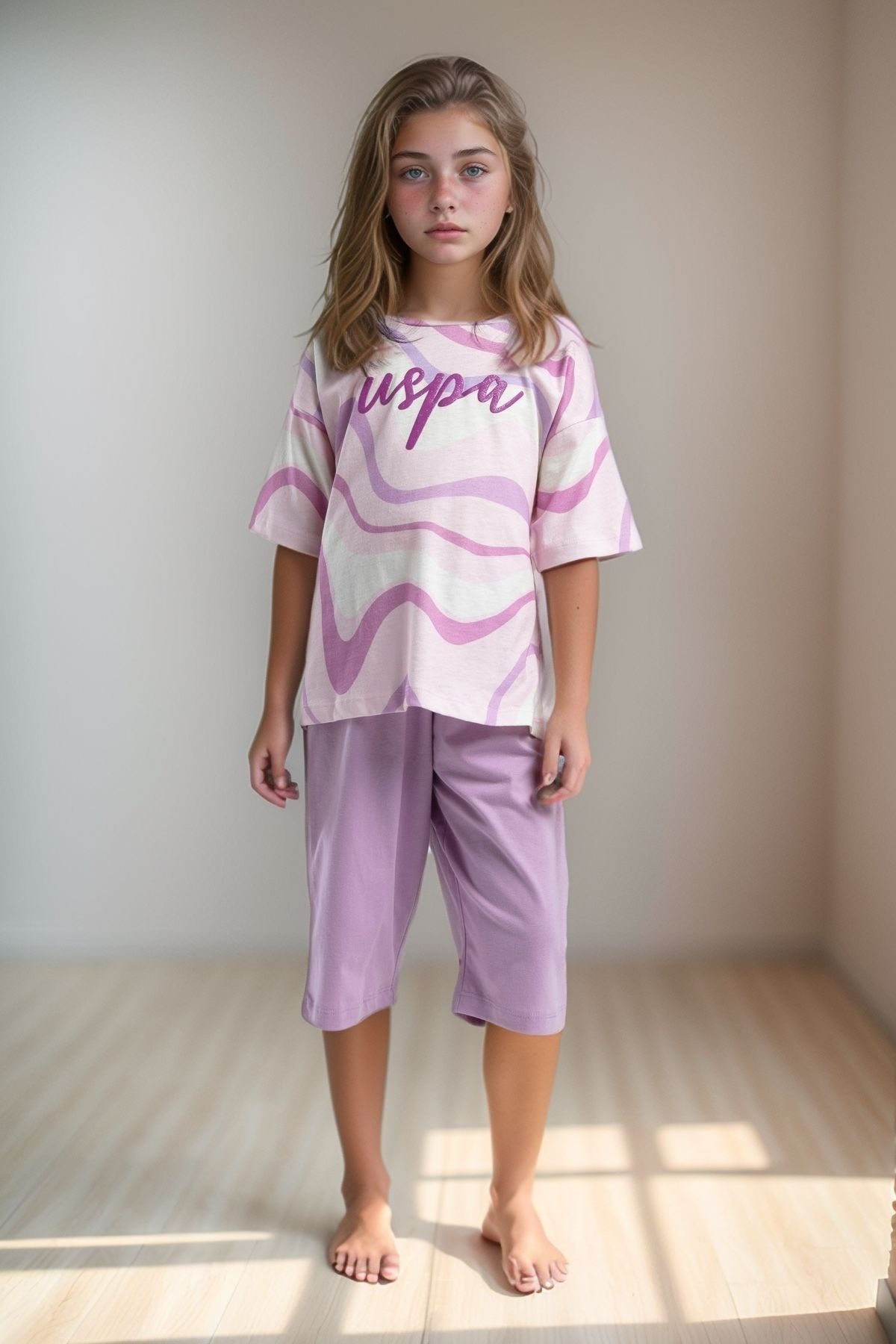 Kız Çocuk %100 Pamuklu Bisiklet Yaka T-shirt Kapri Takım Kız Çocuk %100 Pamuklu Bisiklet Yaka T-shirt Kapri Takım Q3P1K7L3K 12-13 Yaş