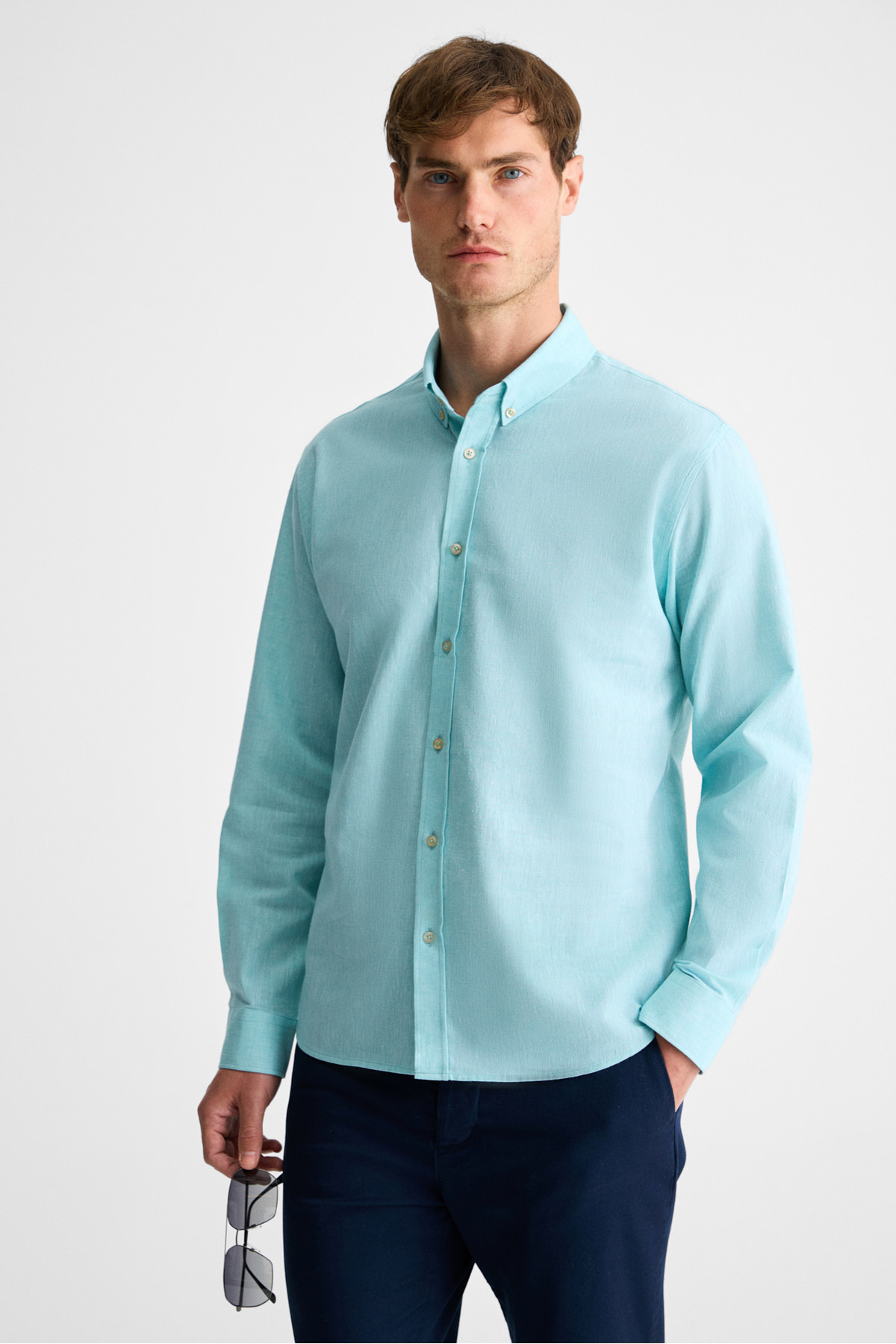 Lasse Erkek Gömlek Yaka Manşetli Uzun Kollu Regular Fit Keten Karışımlı Mint Yeşil Gömlek Lasse Erkek Gömlek Yaka Manşetli Uzun Kollu Regular Fit Keten Karışımlı Mint Yeşil Gömlek LASSE01012025 2XL