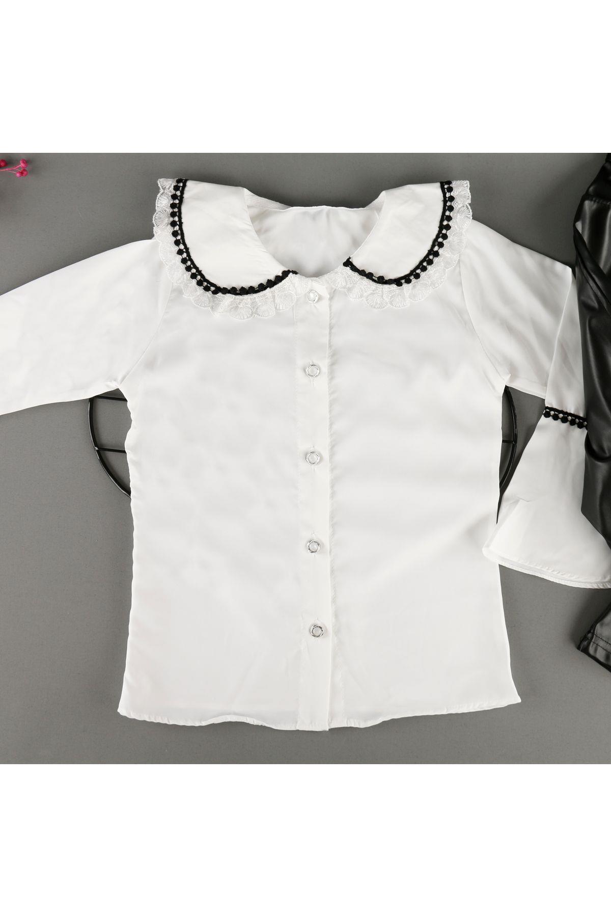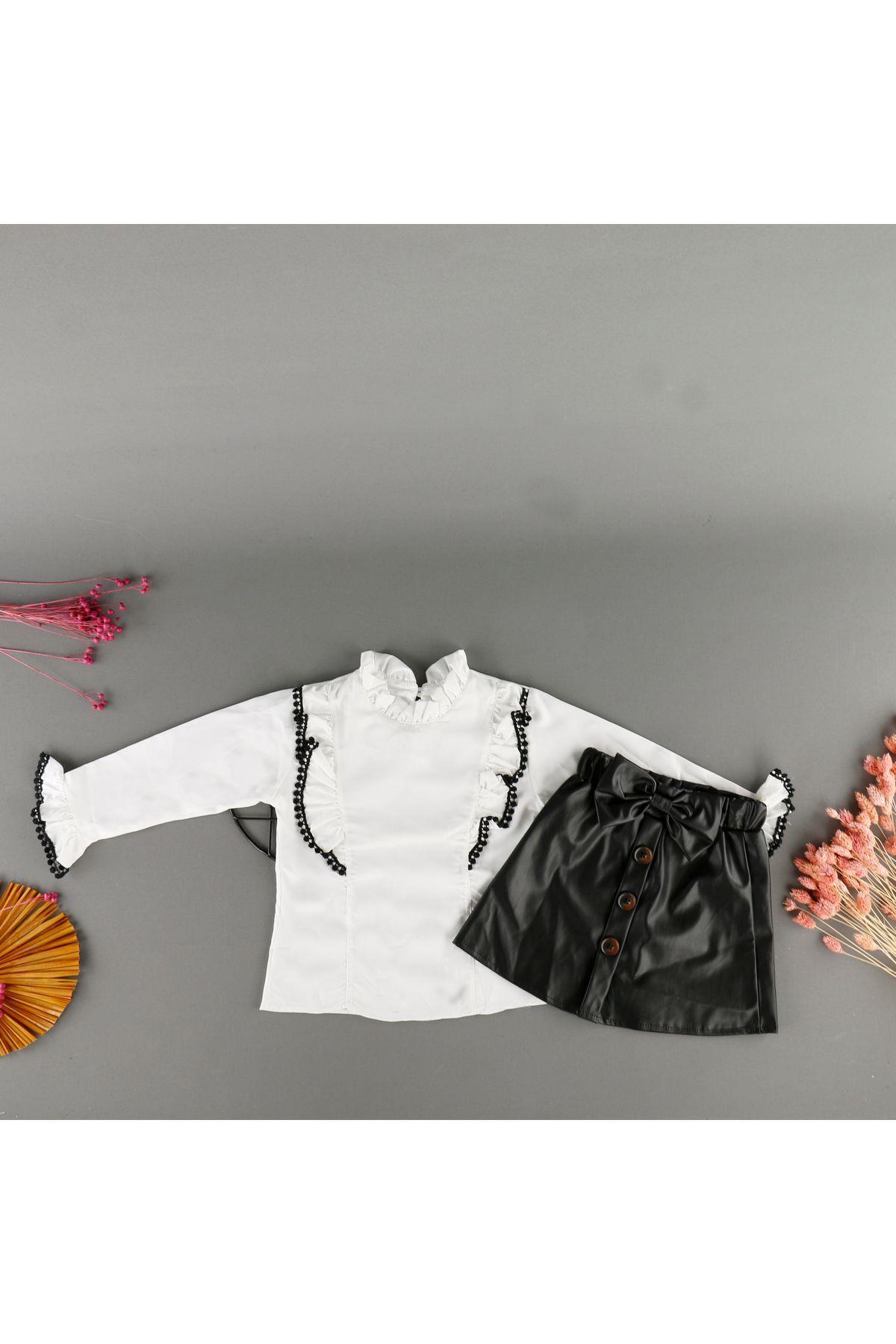 Deri Görünümlü Fisto Yakalı Gömlekli Pantolonlu 2'Li Kız Takm Deri Görünümlü Fisto Yakalı Gömlekli Pantolonlu 2'Li Kız Takm BLZ8152 10 Yaş