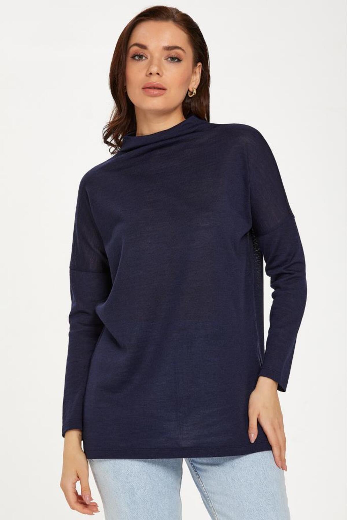 Kadın Saks Kayık Yaka Mevsimlik Triko Bluz Kadın Saks Kayık Yaka Mevsimlik Triko Bluz LC1013 Standart