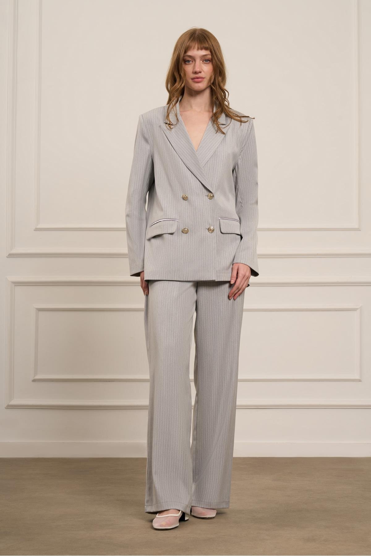 Kadın Çizgili Takım Gri 31077 Kadın Çizgili Takım Gri 31077 42