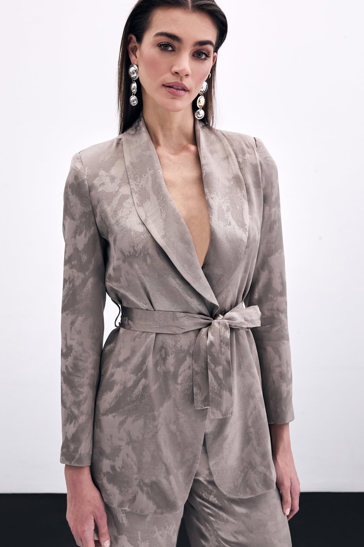 Bağlamalı Jakarlı Ceket - Vizon Bağlamalı Jakarlı Ceket - Vizon STN139KCE1709 42