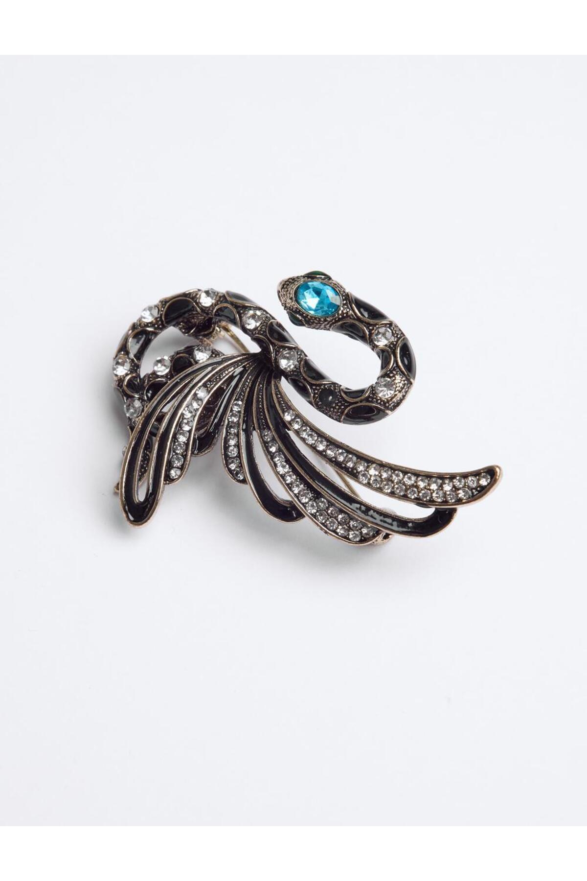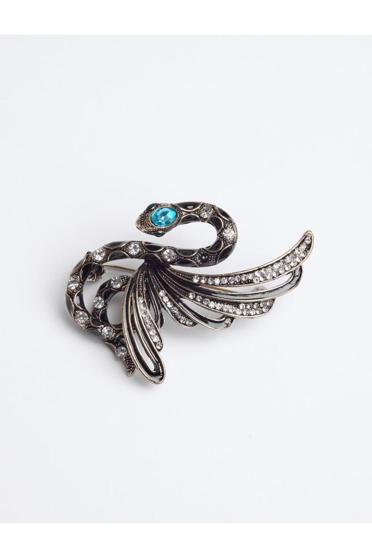 Bronz Yılan Figürlü Parlak Taşlı Broş Bronz Yılan Figürlü Parlak Taşlı Broş 5SW353986 تک سایز