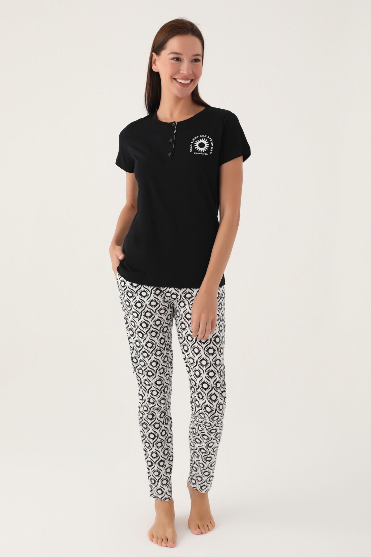 Kadın Kısa Kol T-Shirt & Çiçek Desenli Uzun Pantolon Pijama Takımı Kadın Kısa Kol T-Shirt & Çiçek Desenli Uzun Pantolon Pijama Takımı 9.SO.0.WE.0.TO.6.P.C XL