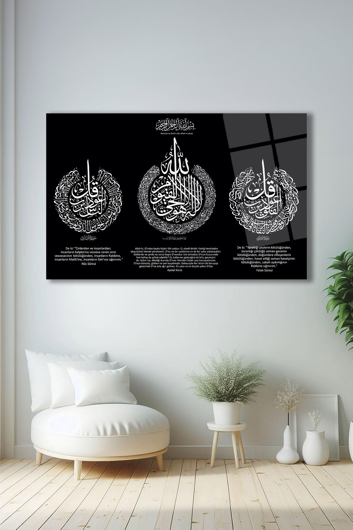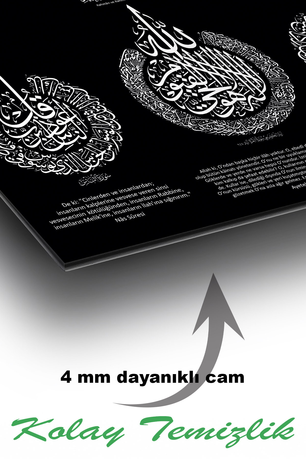 Ayetel Kürsi Felak ve Nas Sureleri Dini İslami Yatay Cam Tablo, İş, Ofis,Makam Odası Hediyelik Tablo Ayetel Kürsi Felak ve Nas Sureleri Dini İslami Yatay Cam Tablo, İş, Ofis,Makam Odası Hediyelik Tablo DS70-10472DS 150 x 95