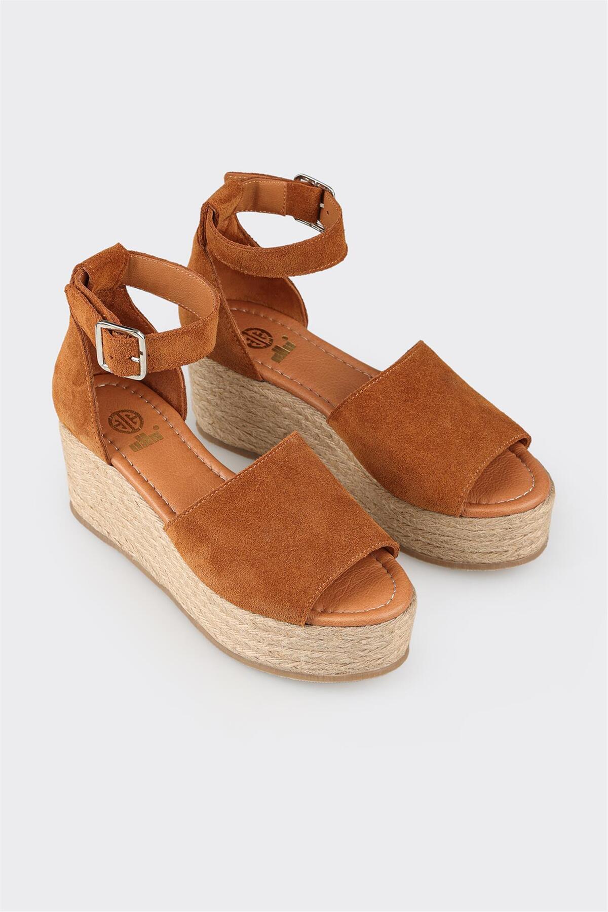 Taba Deri Kadın Dolgu Topuklu Sandalet Taba Deri Kadın Dolgu Topuklu Sandalet RYANA-5 40