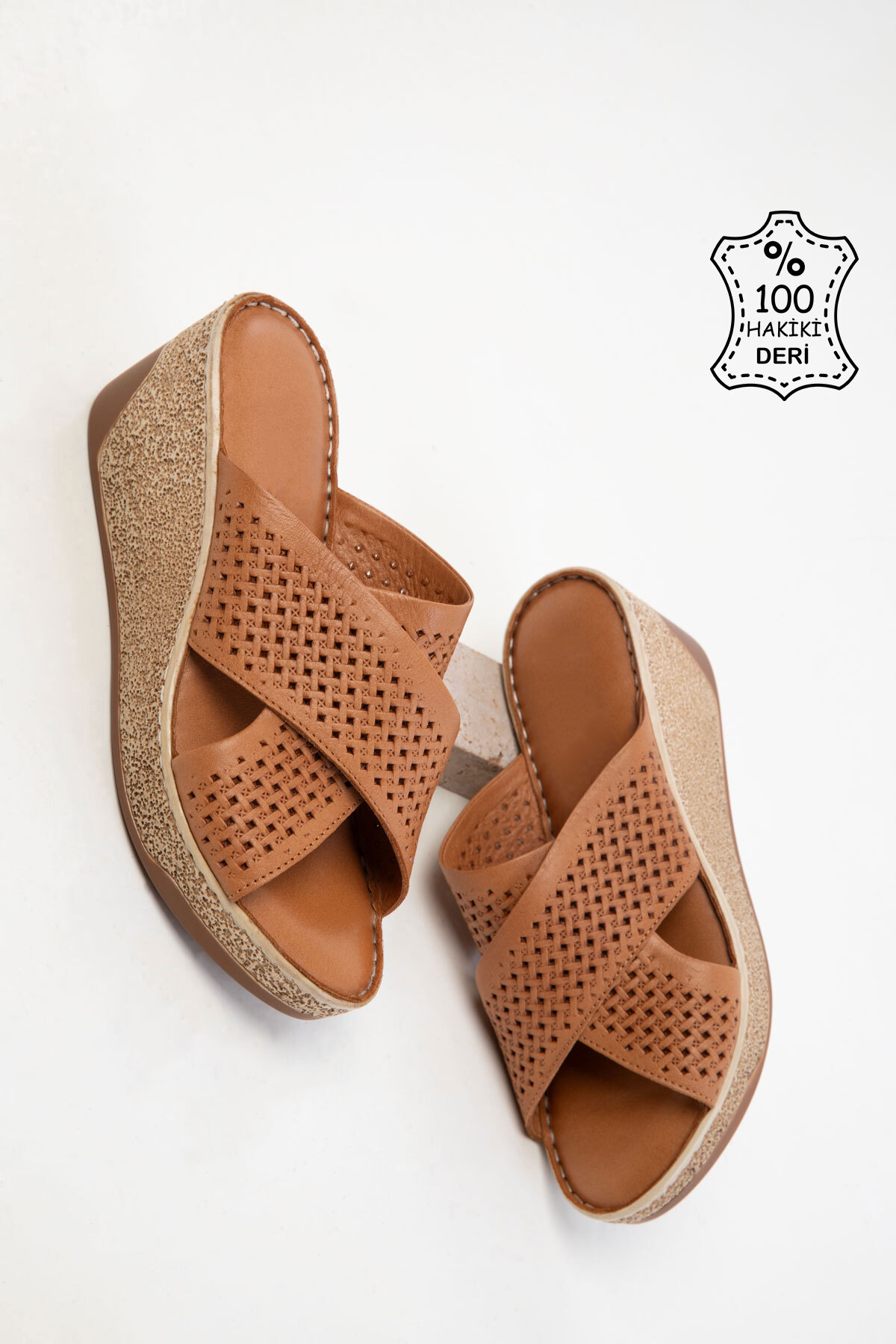 Taba Hakiki Deri Kadın Dolgu Topuklu Ayakkabı 20518 Taba Hakiki Deri Kadın Dolgu Topuklu Ayakkabı 20518 41