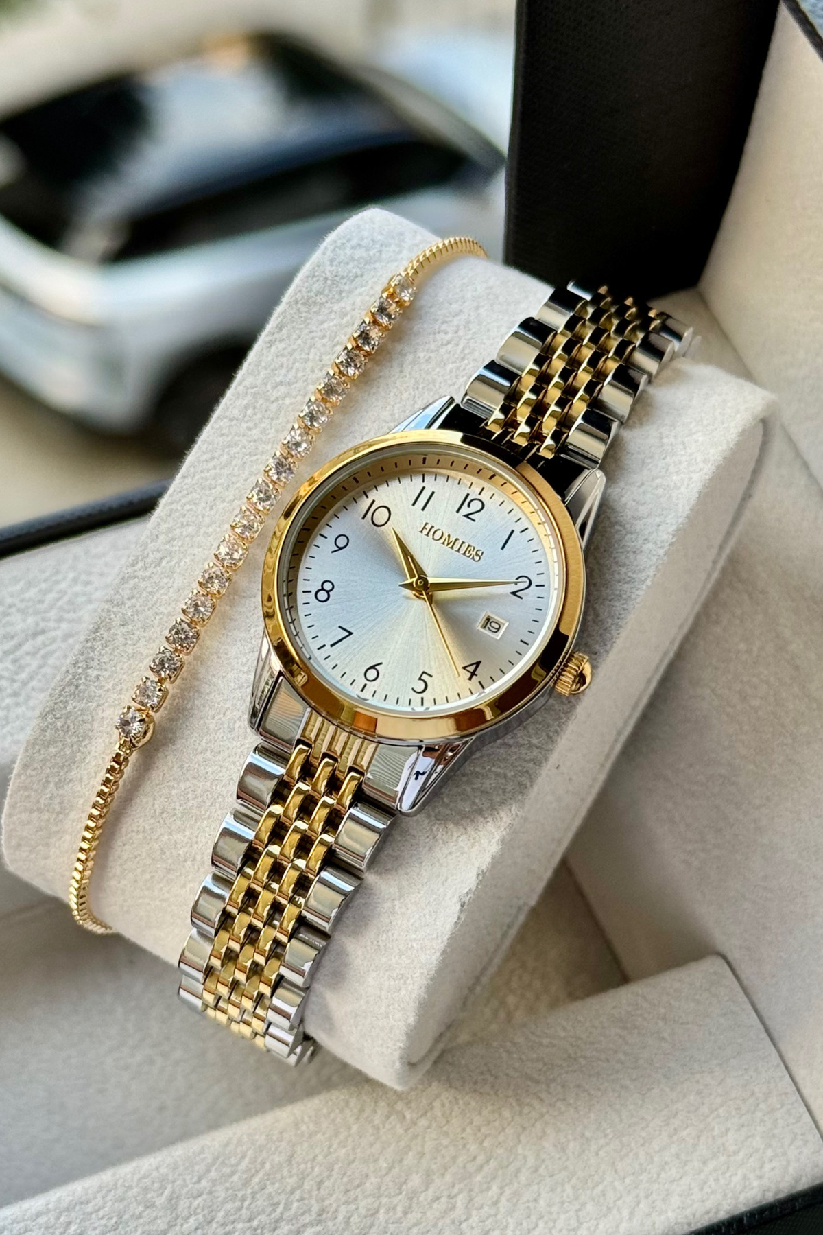 KADIN KOL SAATİ TAKVİMLİ 2 YIL GARANTİLİ HEDİYELİK KUTUSU VE BİLEKLİK HEDİYELİ.HMRLX001 KADIN KOL SAATİ TAKVİMLİ 2 YIL GARANTİLİ HEDİYELİK KUTUSU VE BİLEKLİK HEDİYELİ.HMRLX001 تک سایز