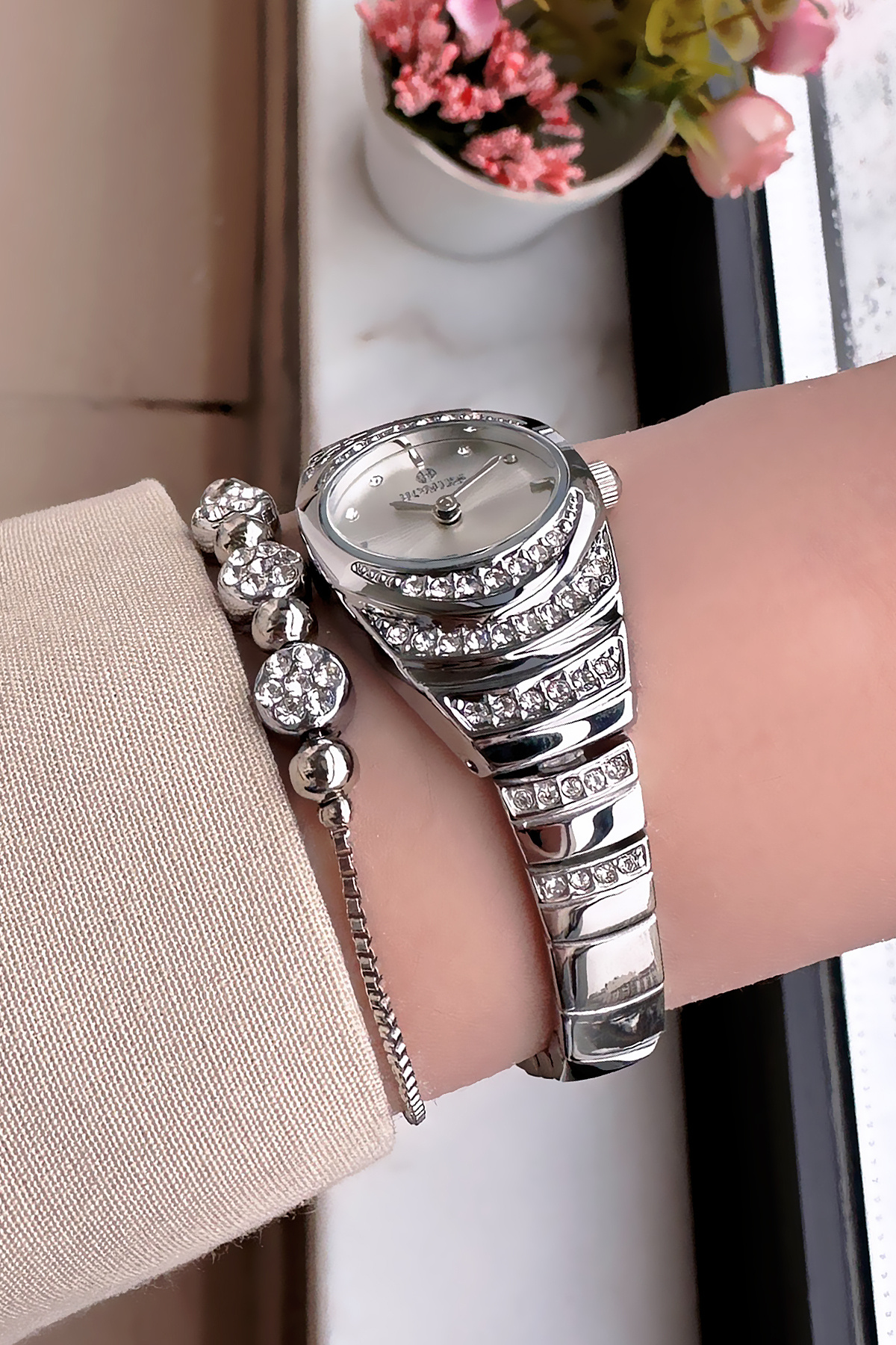 Özel Kutulu Taşlı Kadın Kol Saati Su Geçirmez Gümüş Renk Çelik Kordon Hediye Bileklik HMBY2051C2 Özel Kutulu Taşlı Kadın Kol Saati Su Geçirmez Gümüş Renk Çelik Kordon Hediye Bileklik HMBY2051C2 تک سایز