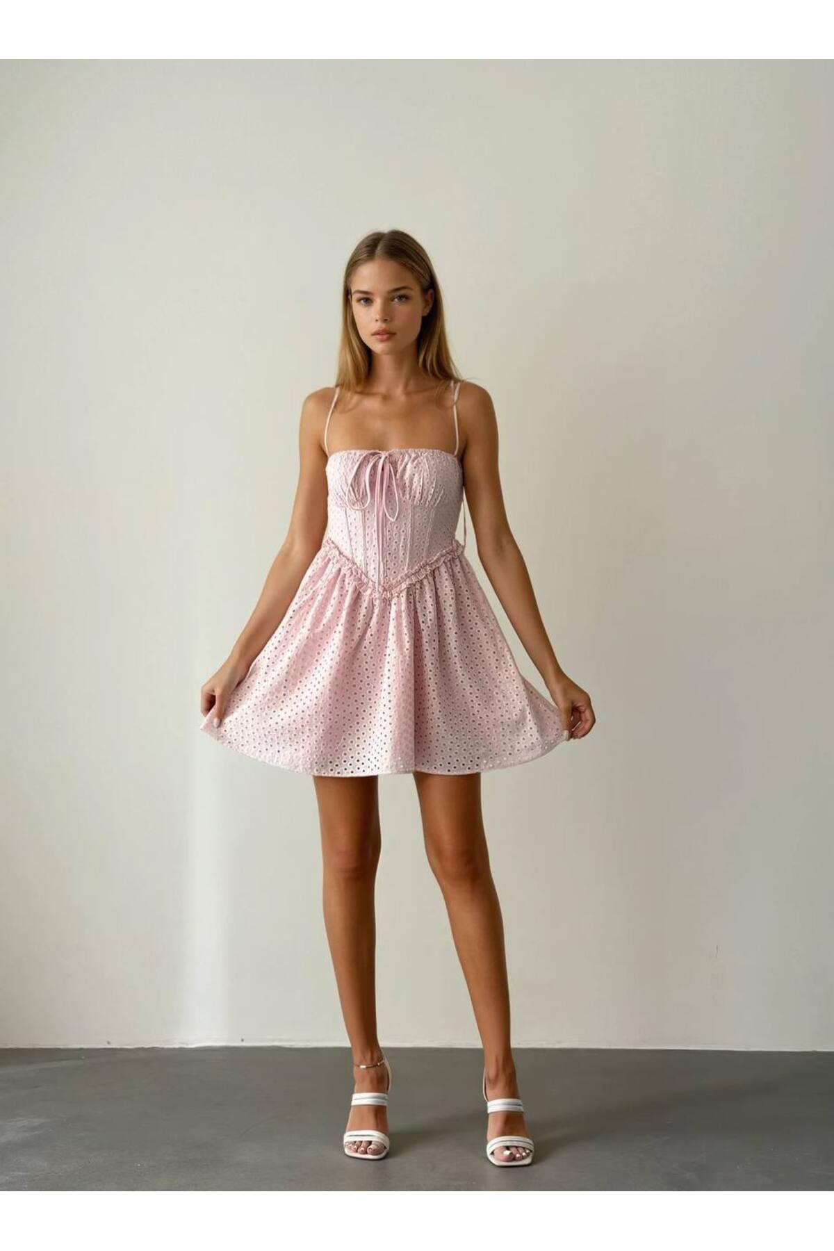 İnce Bağcıklı Askılı Büstiyer Detaylı Göğüs Kısmı Büzgülü Delikli Brode Party Parti Elbise İnce Bağcıklı Askılı Büstiyer Detaylı Göğüs Kısmı Büzgülü Delikli Brode Party Parti Elbise FC11836 40