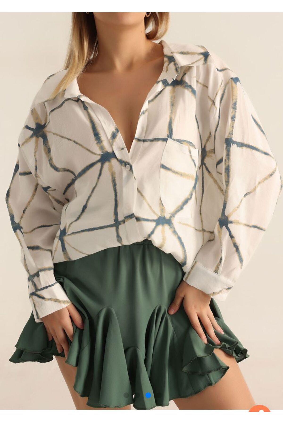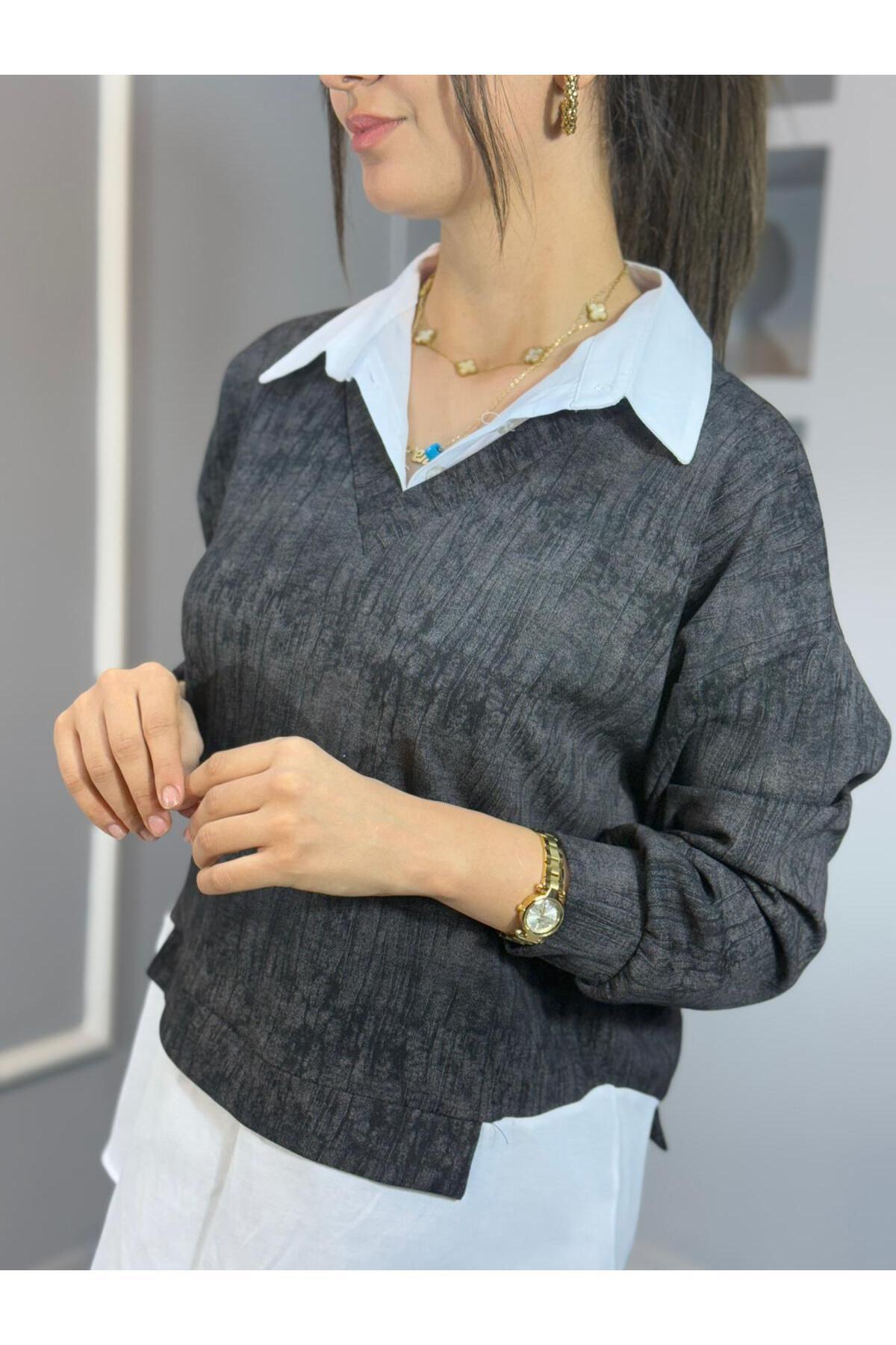 Kadın Siyah Beyaz Desenli Yarasa Kısa Kollu Gömlek Kadın Siyah Beyaz Desenli Yarasa Kısa Kollu Gömlek KS-10001 XL