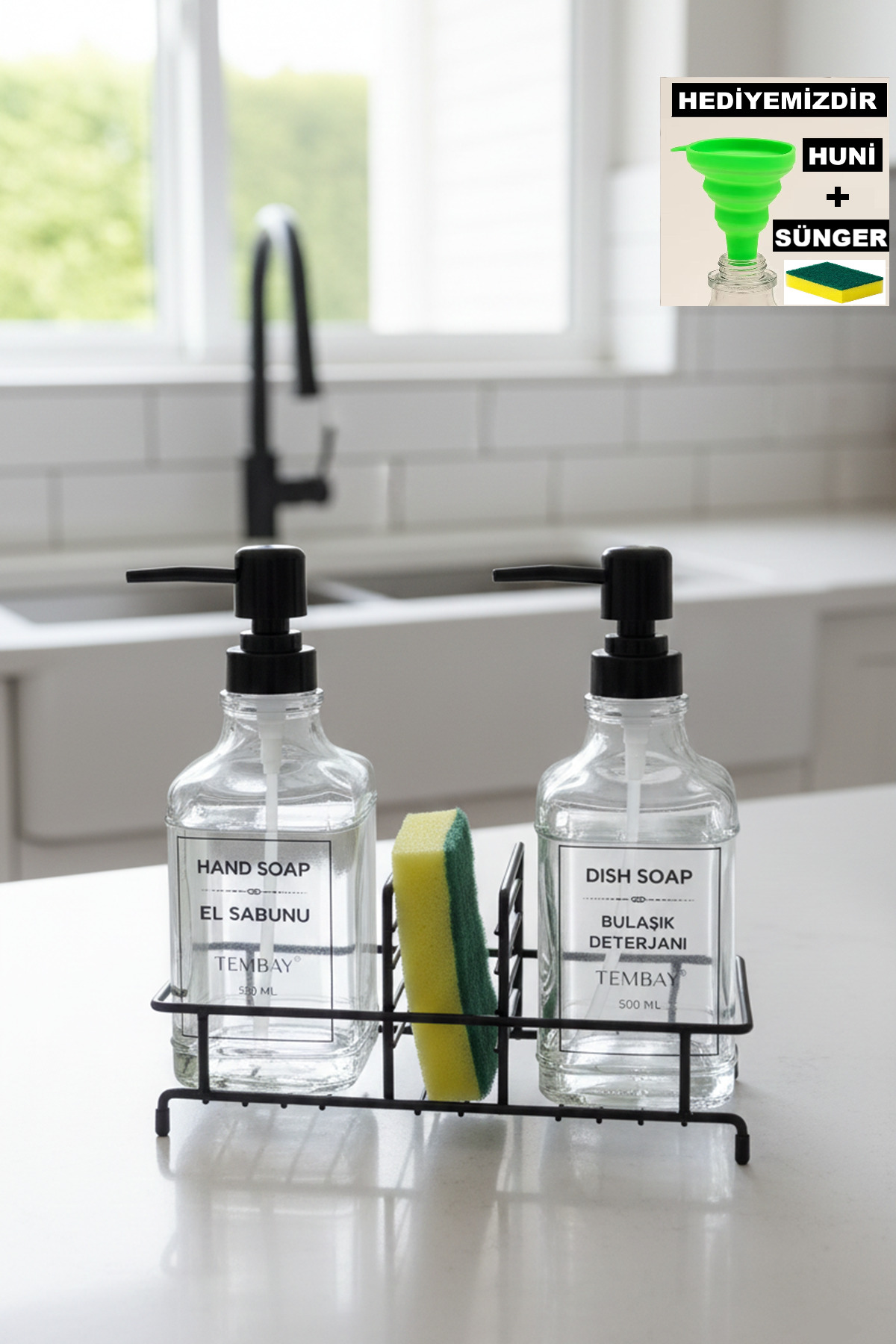 Siyah Pompalı Fırçalı ve Standlı İkili Kare Cam Sıvı Sabunluk 500ml Siyah Pompalı Fırçalı ve Standlı İkili Kare Cam Sıvı Sabunluk 500ml AS-872-DK تک سایز