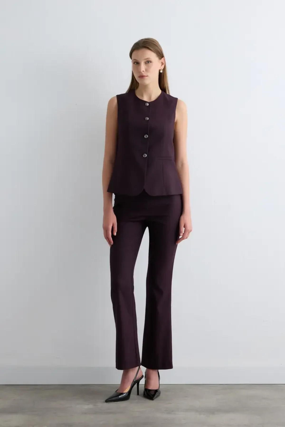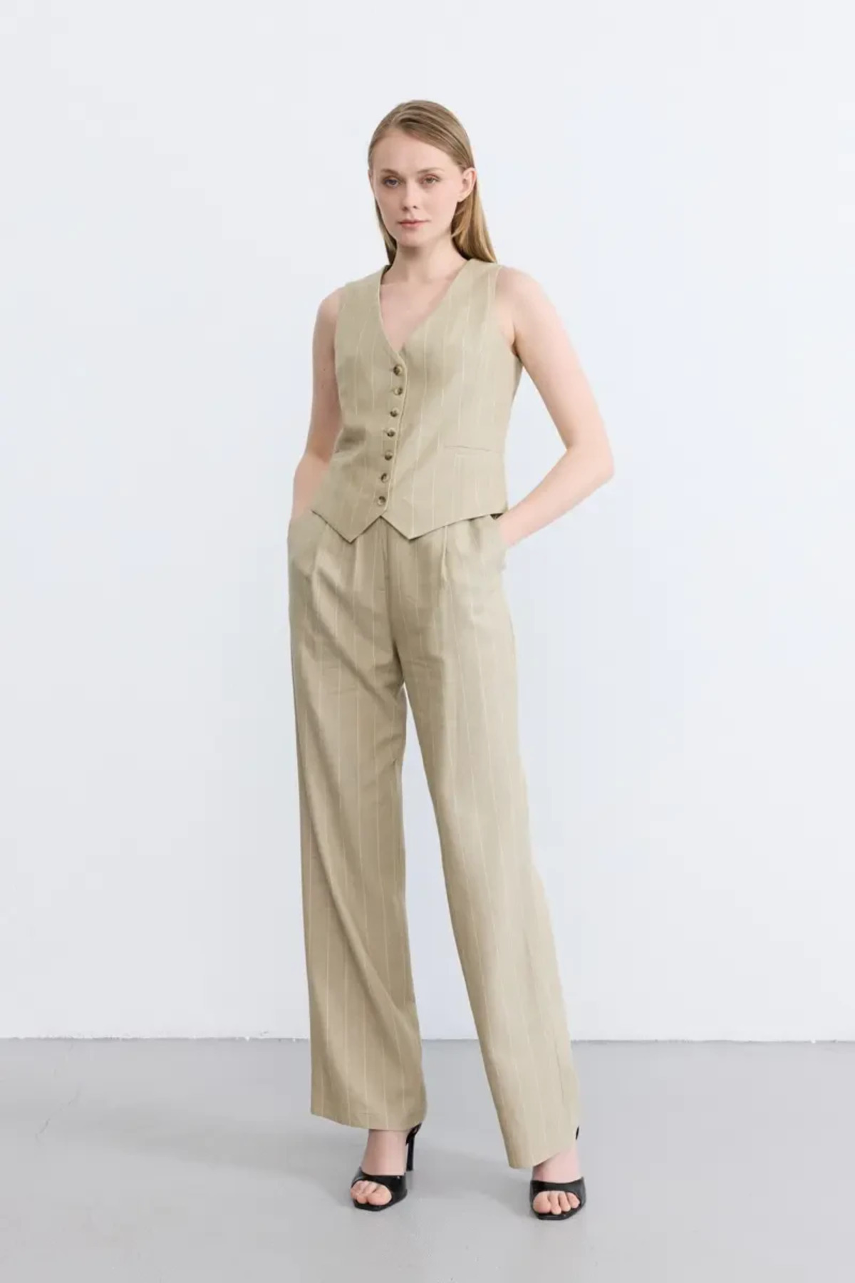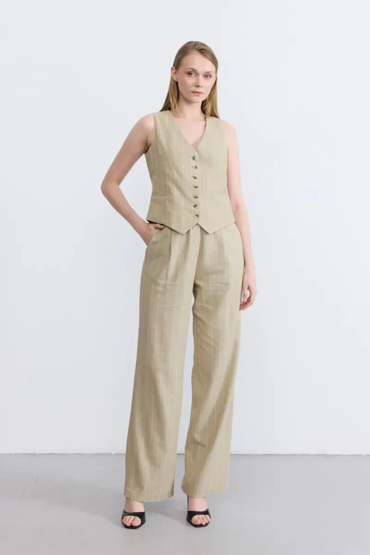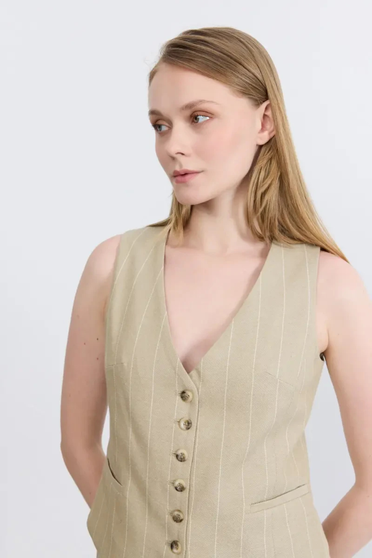 Çizgili Keten Içerikli Yelek - Bej Çizgili Keten Içerikli Yelek - Bej 25YG002614 XL