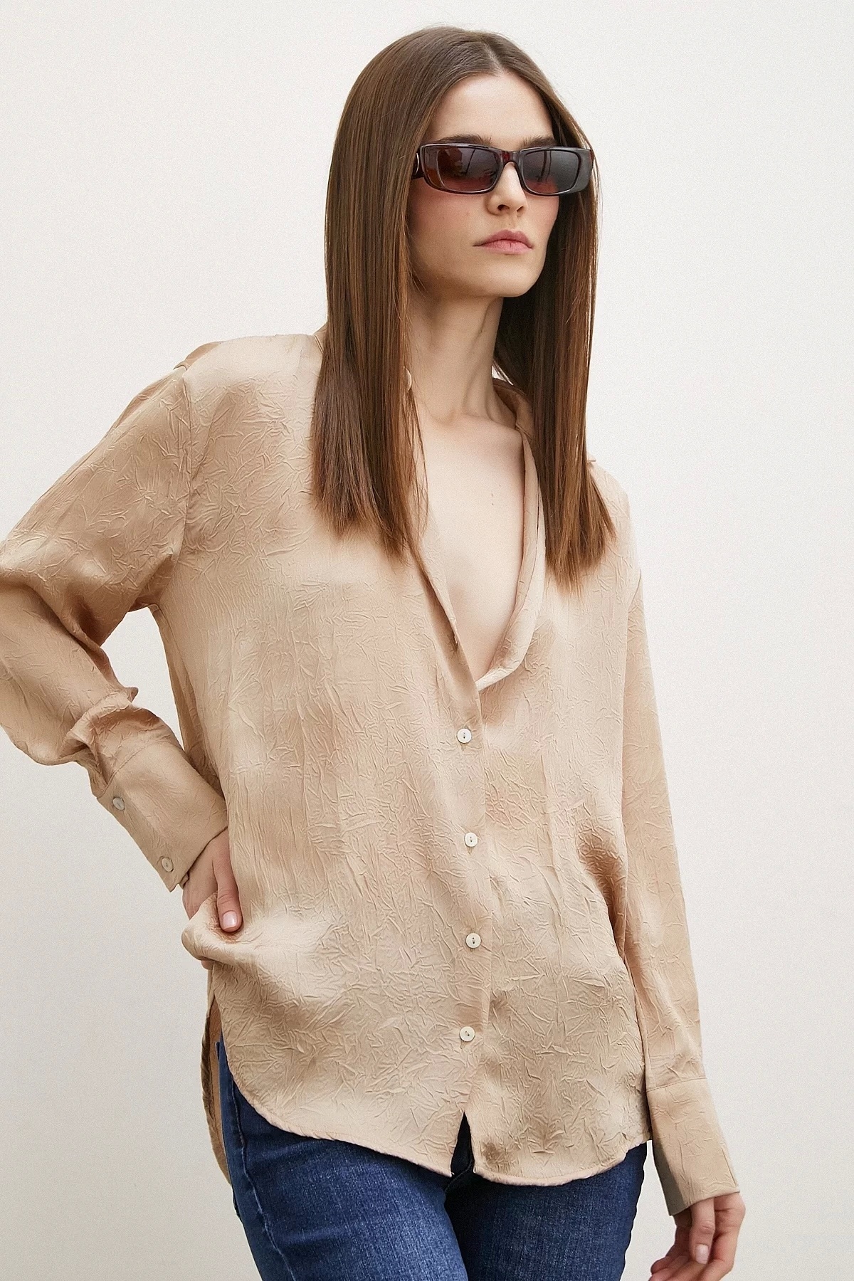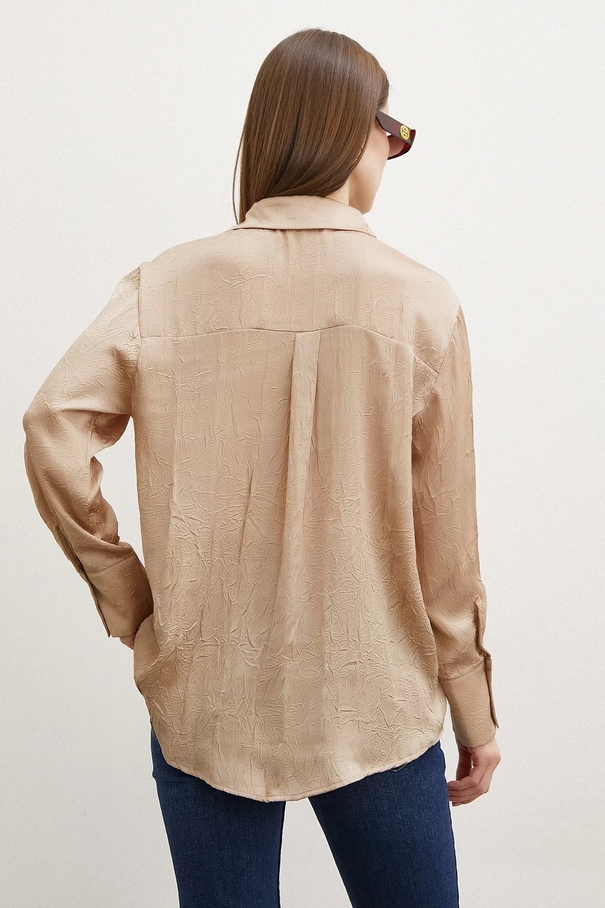 Kraşlı Saten Gömlek Vizon Kraşlı Saten Gömlek Vizon P1483S9268 L