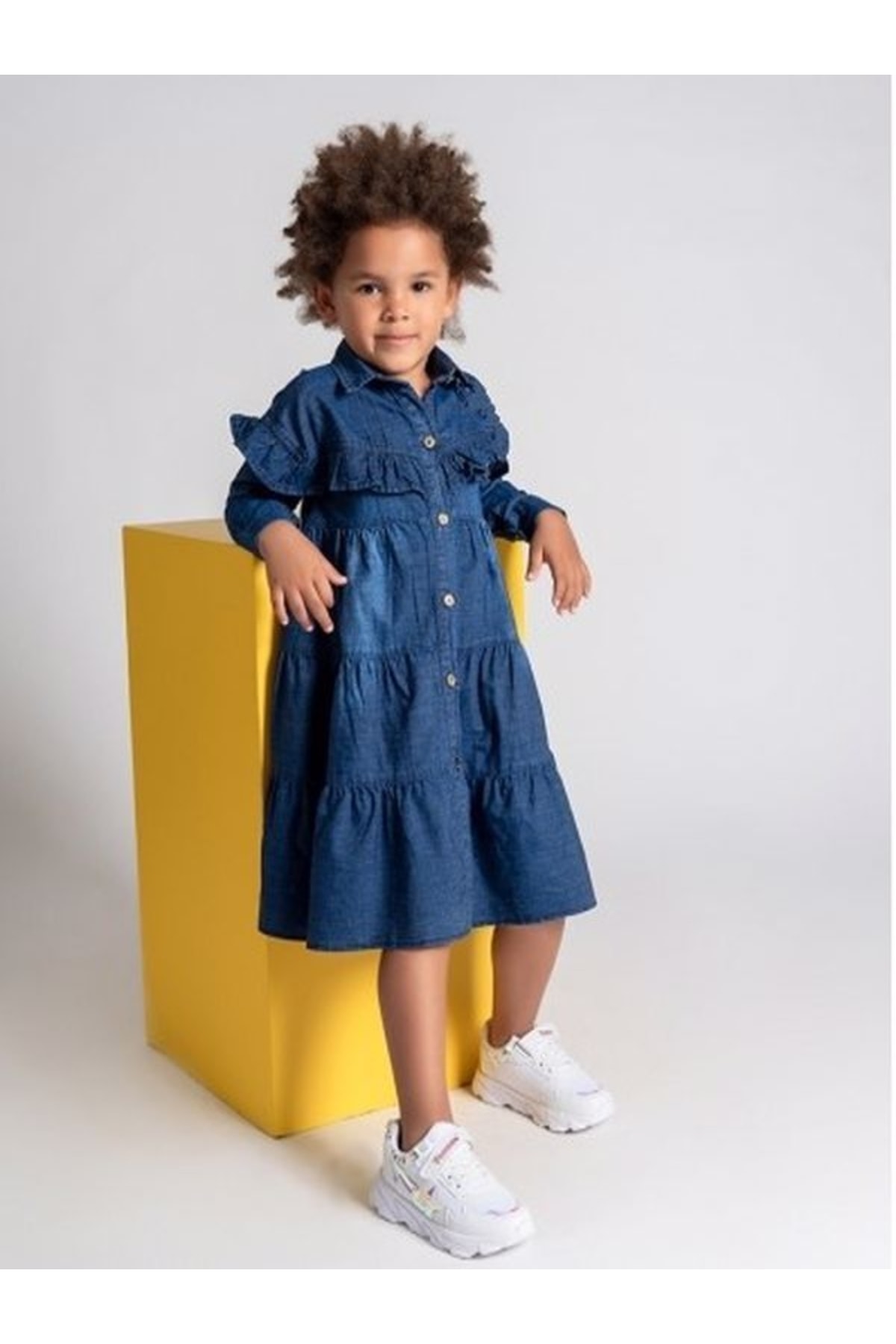 Kız Çocuk Denim Önden Düğmeli Elbise - İndigo Kız Çocuk Denim Önden Düğmeli Elbise - İndigo 251Z4DNM31 9-10 Yaş