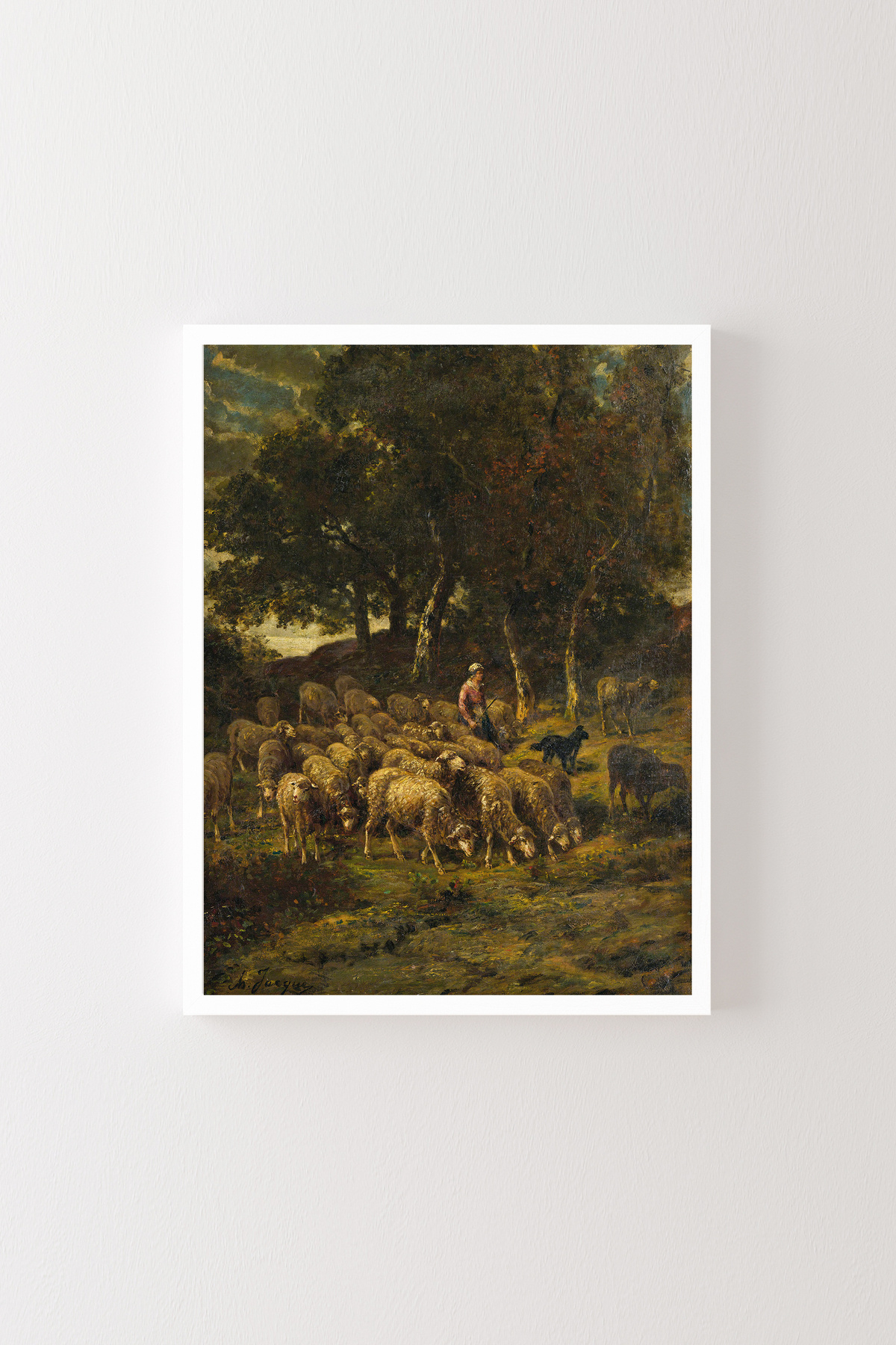 Çoban Kız ve Sürüsü - Siyah Çerçeve Çoban Kız ve Sürüsü - Siyah Çerçeve epq00070 50 x 70