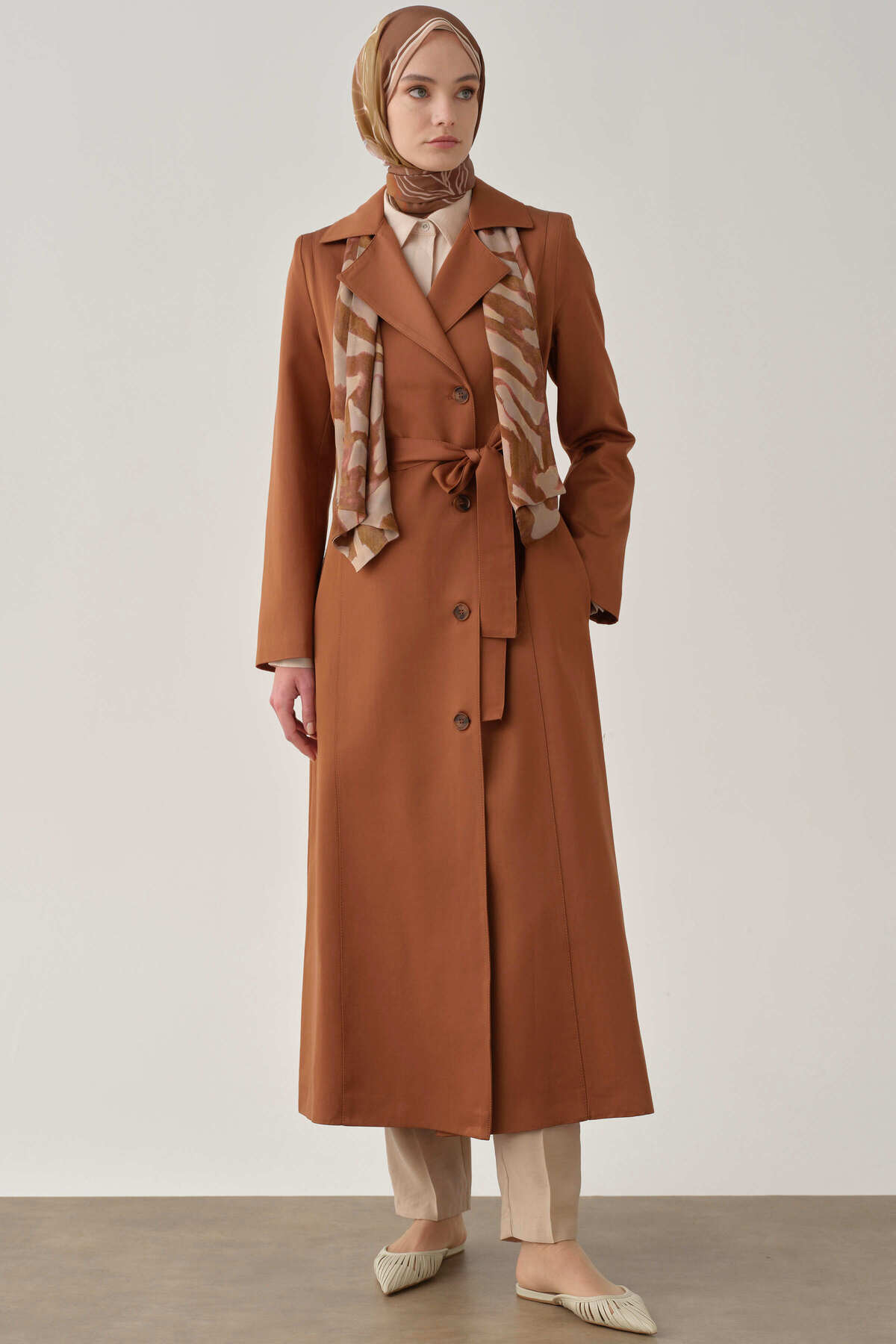 Garni Fular Detaylı Trençkot - Taba Garni Fular Detaylı Trençkot - Taba 251TC3002STB.1-41 42