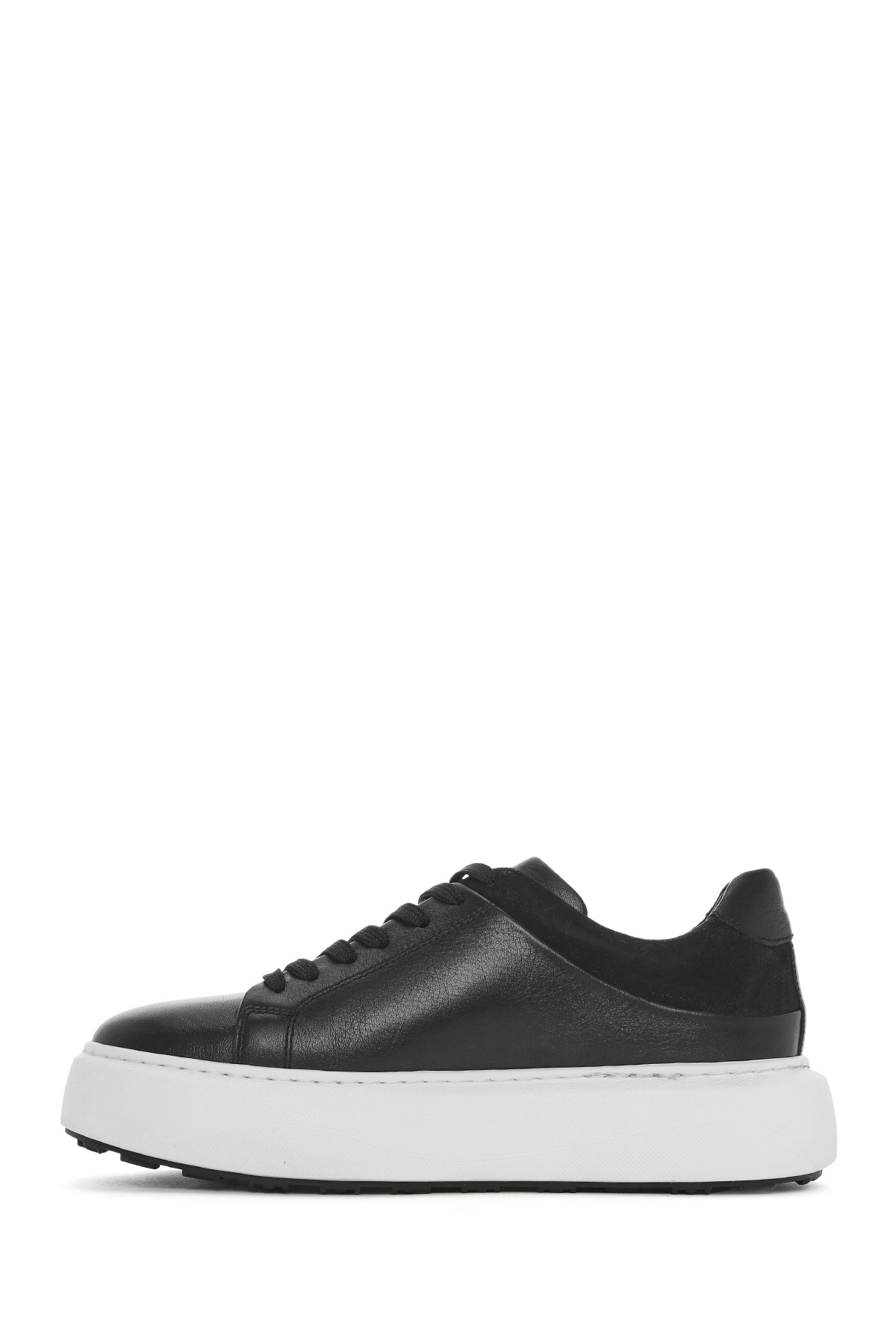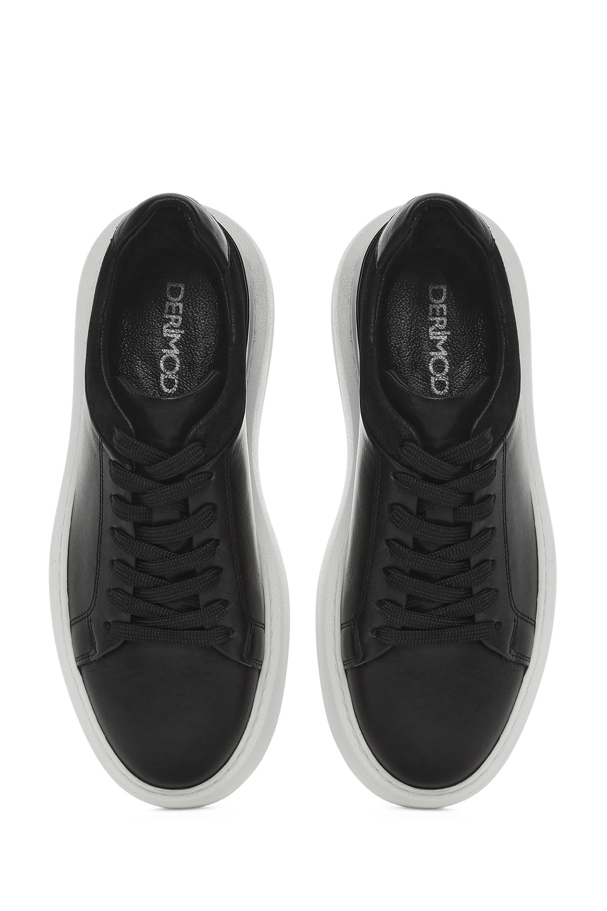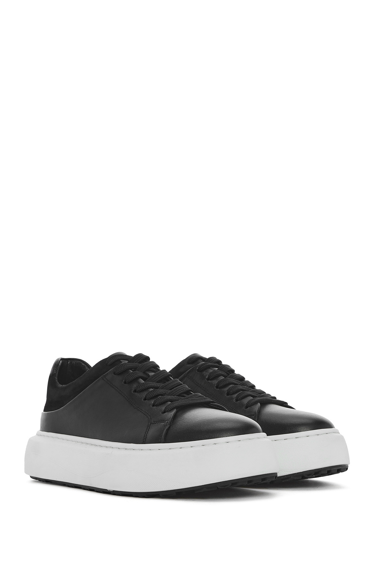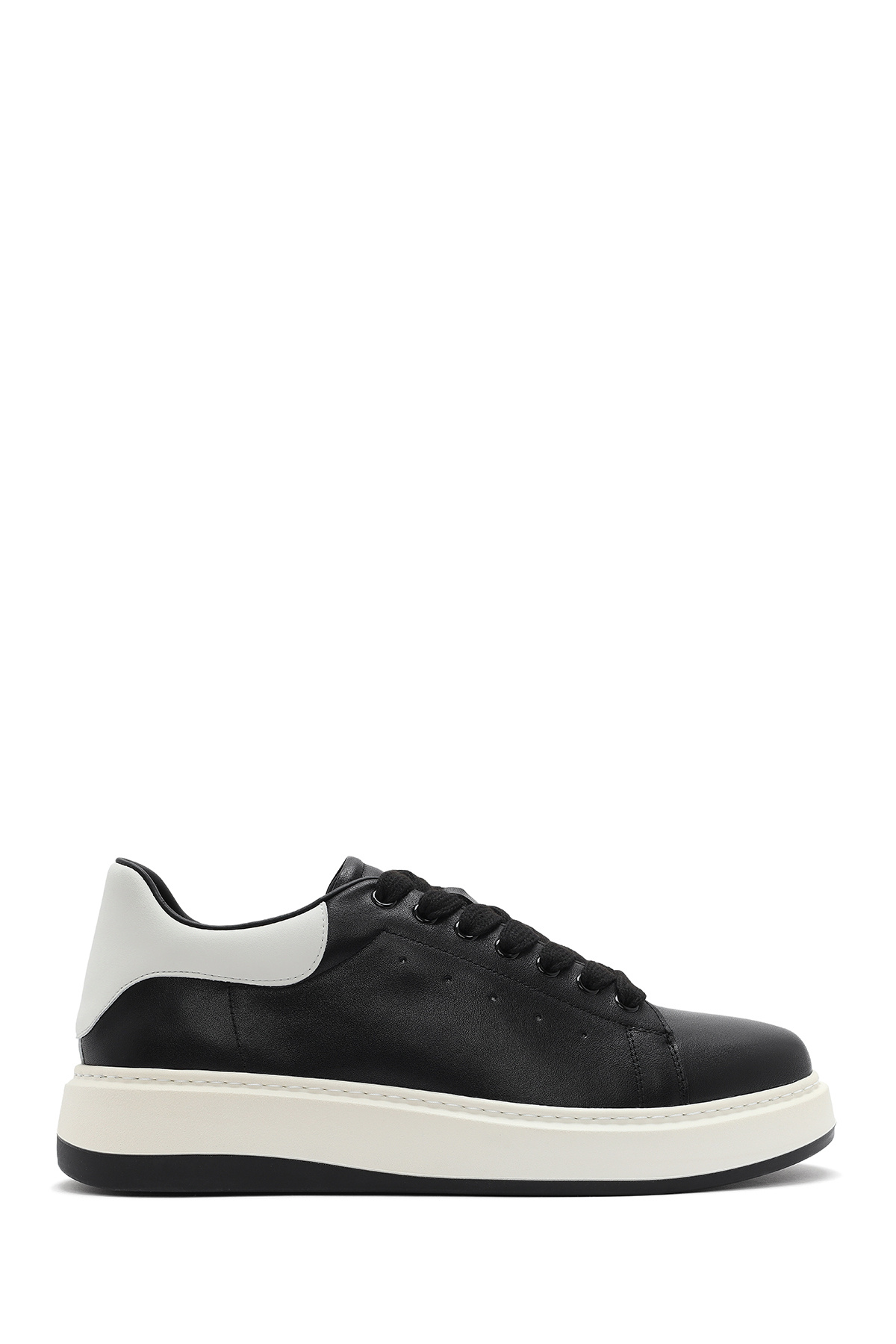 Erkek Siyah Bağcıklı Kalın Tabanlı Deri Sneaker 25SFD641618 Erkek Siyah Bağcıklı Kalın Tabanlı Deri Sneaker 25SFD641618 44
