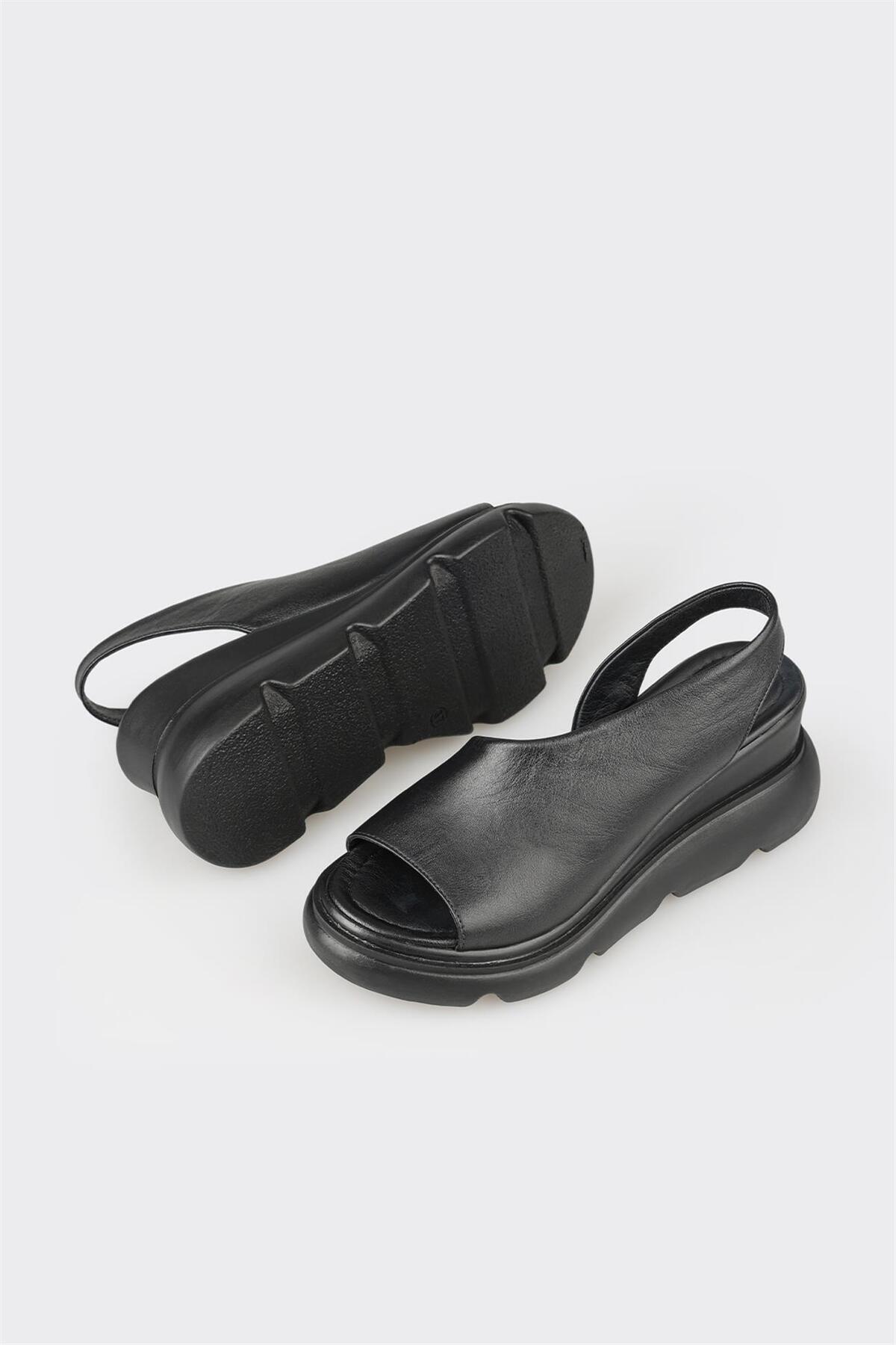 Siyah Deri Kadın Dolgu Topuklu Sandalet Siyah Deri Kadın Dolgu Topuklu Sandalet SAMIKAS-2 40