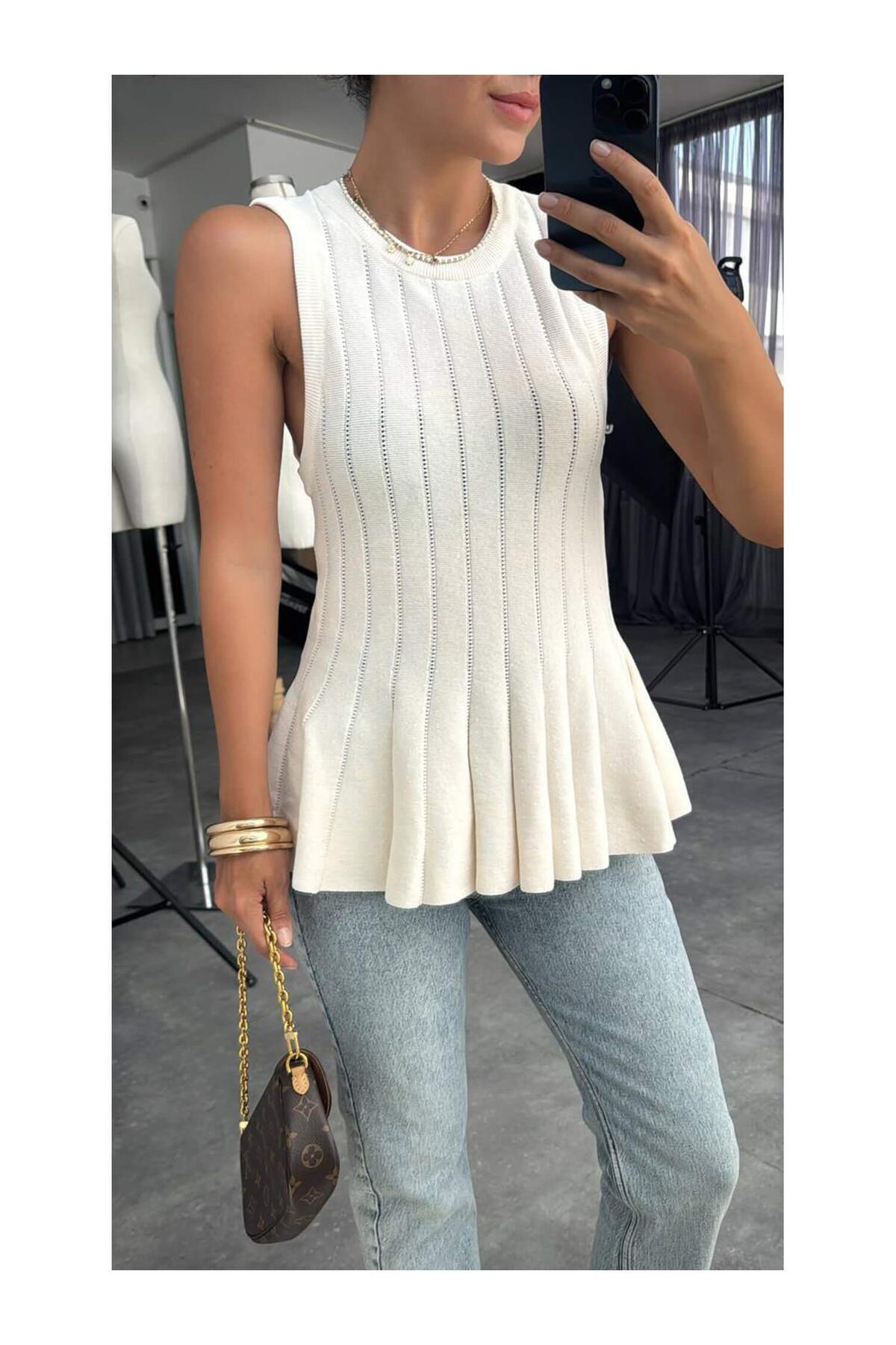 10741 Kayık Yaka Volanlı Triko Bluz-Mavi 10741 Kayık Yaka Volanlı Triko Bluz-Mavi 101A10741 Standart