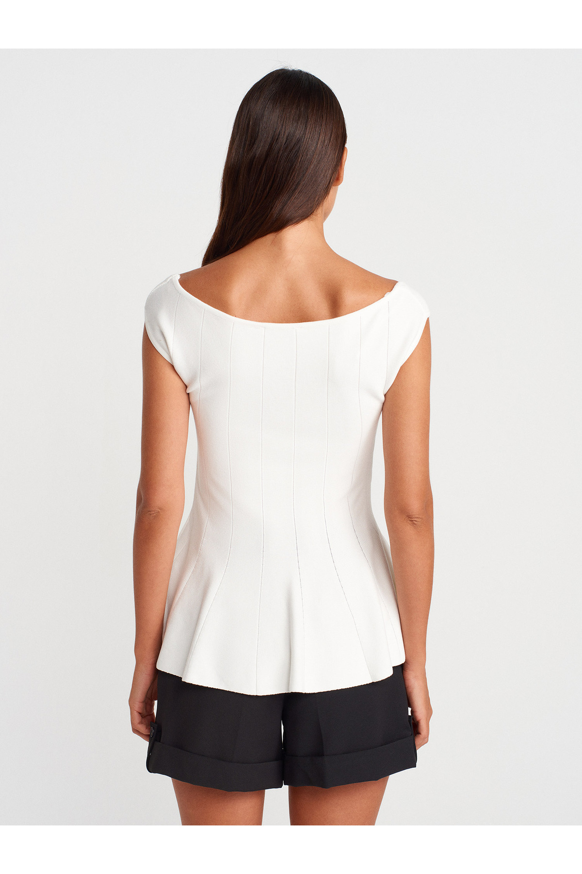 10741 Kayık Yaka Volanlı Triko Bluz-Ekru 10741 Kayık Yaka Volanlı Triko Bluz-Ekru 101A10741 Standart