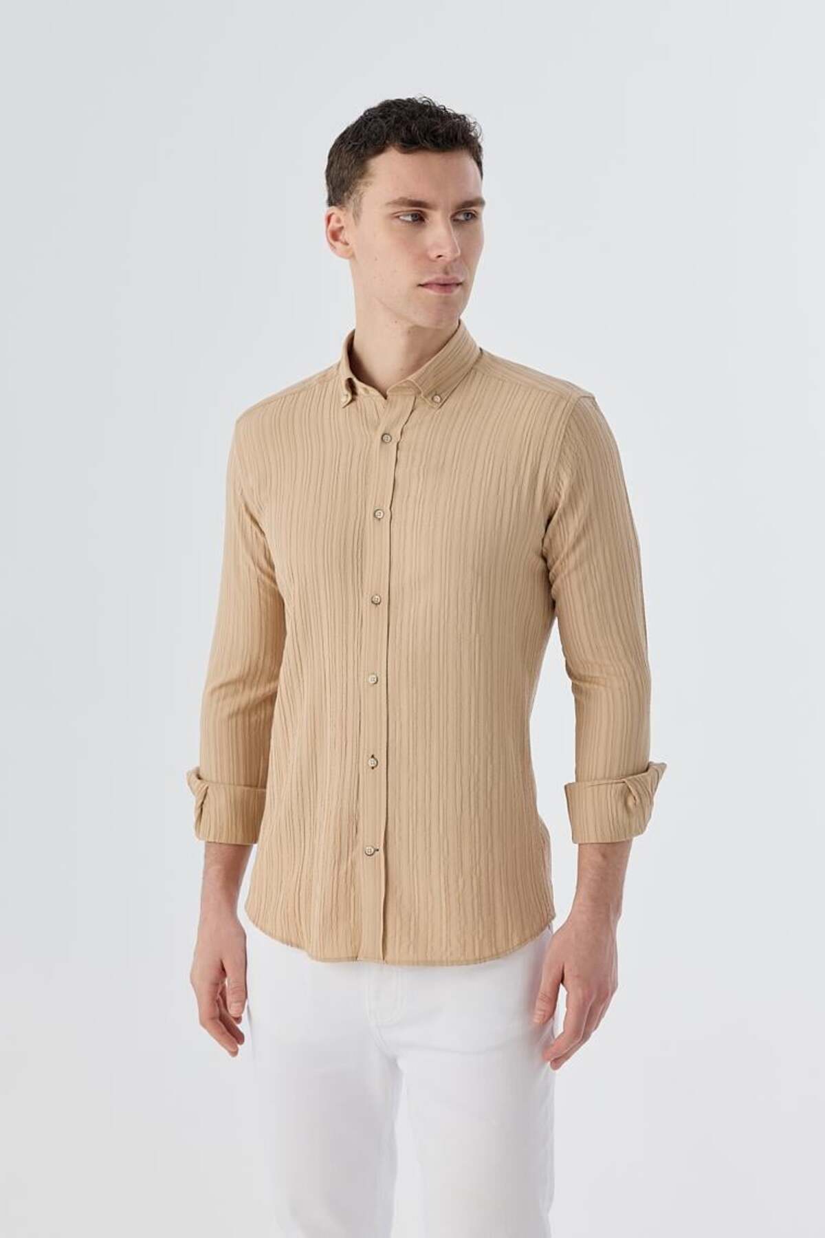 Bej Slim Fit Cepli Düğmeli Yaka %100 Pamuk Gömlek Bej Slim Fit Cepli Düğmeli Yaka %100 Pamuk Gömlek JK37SF01M016 2XL