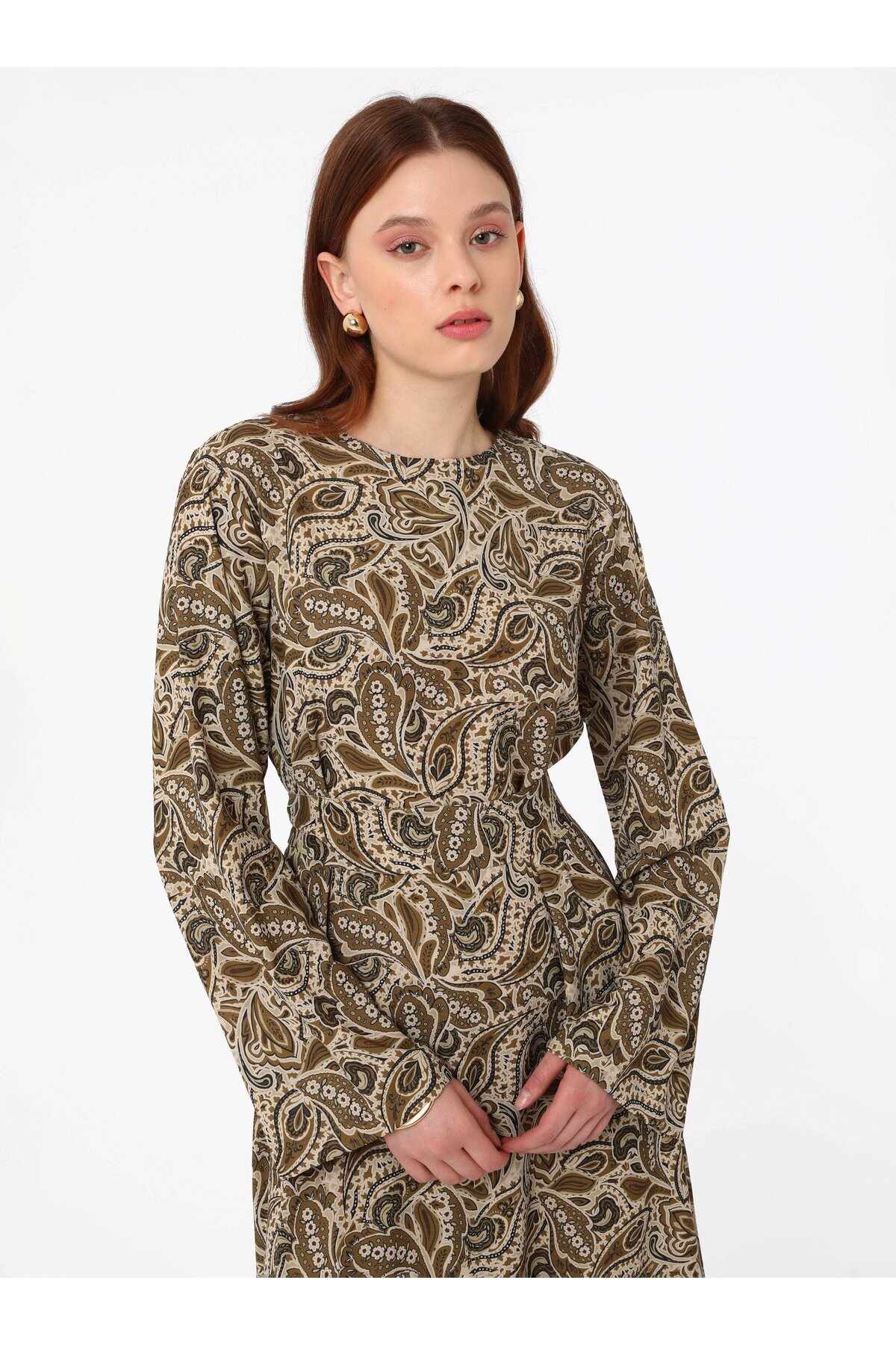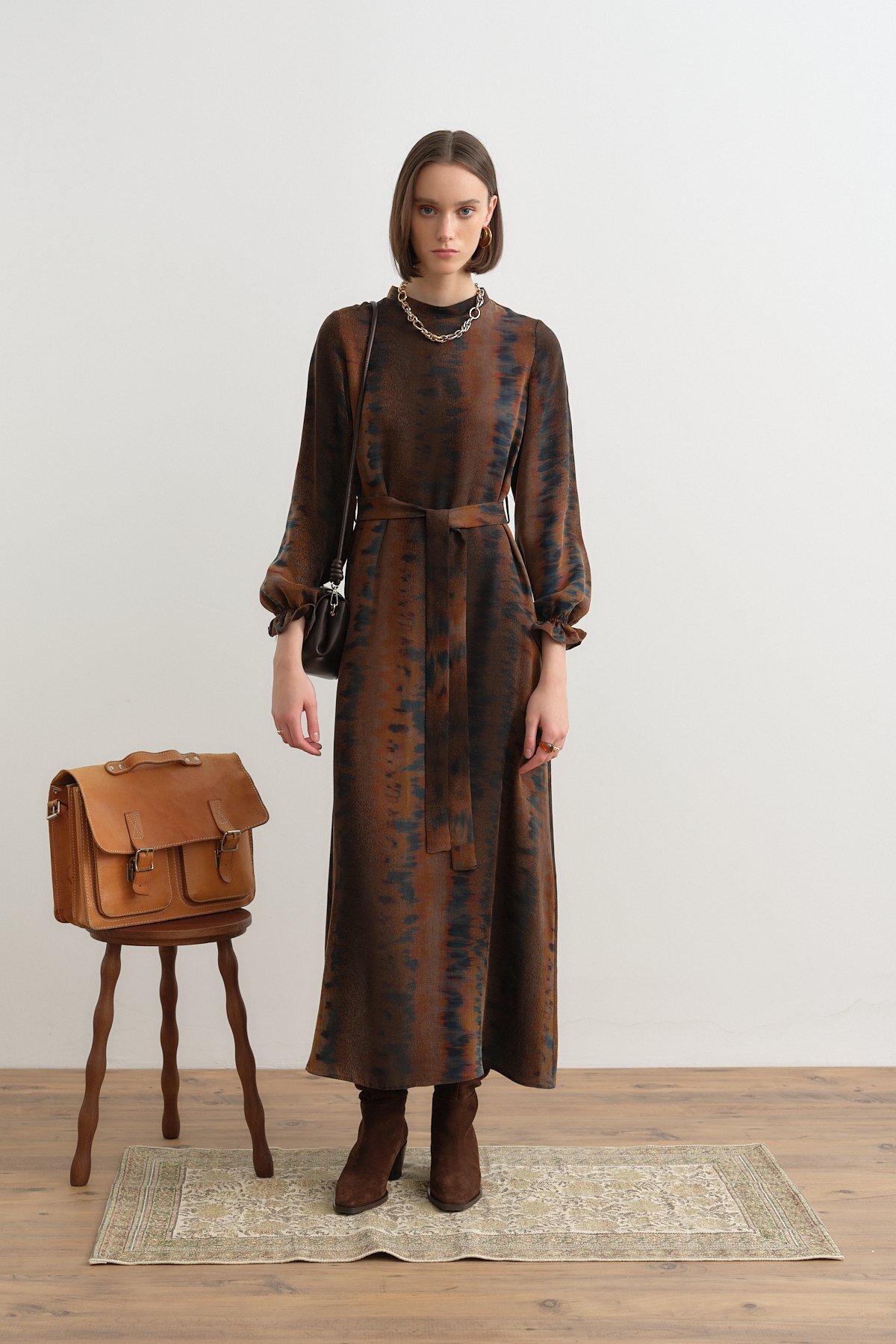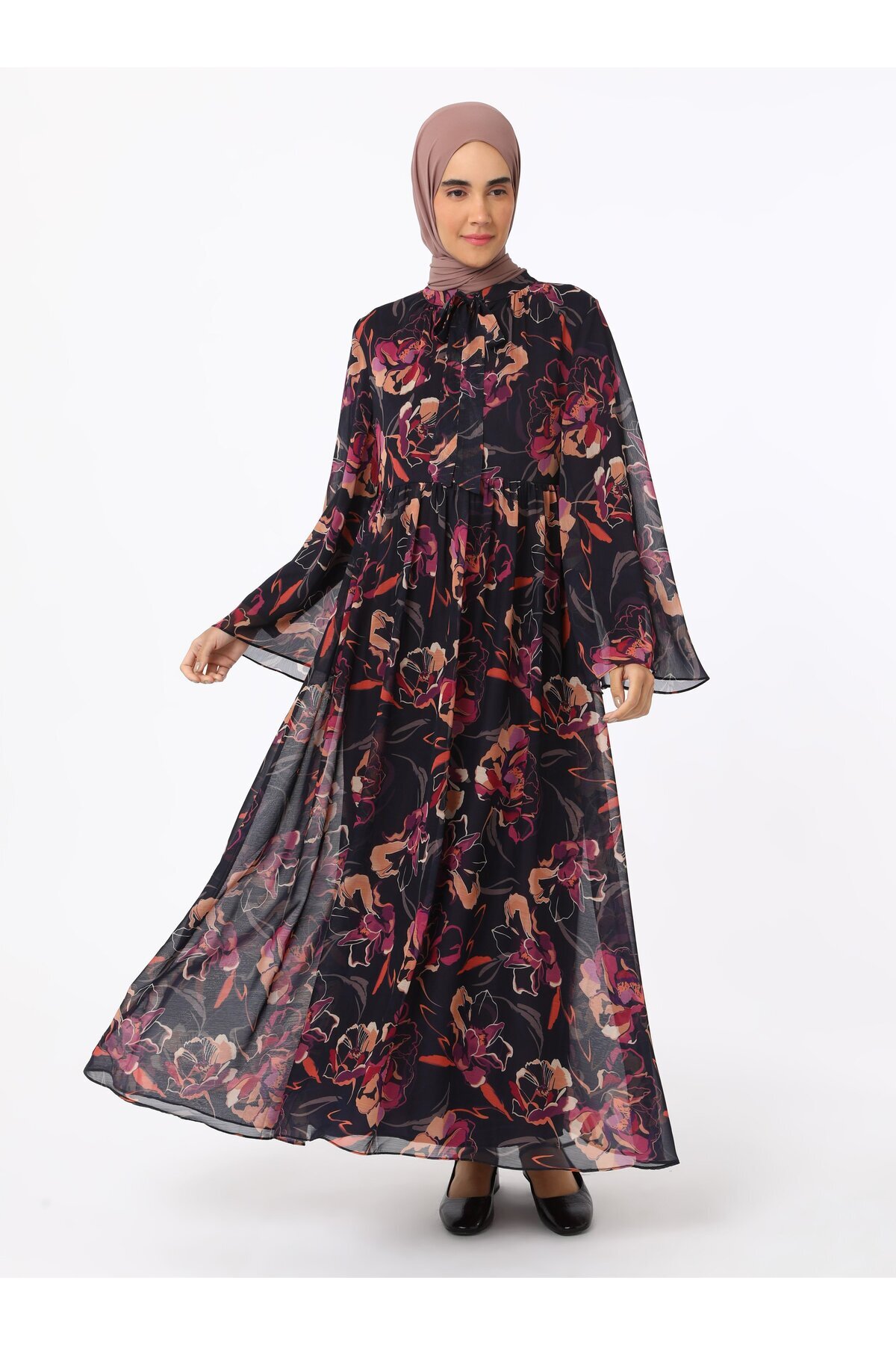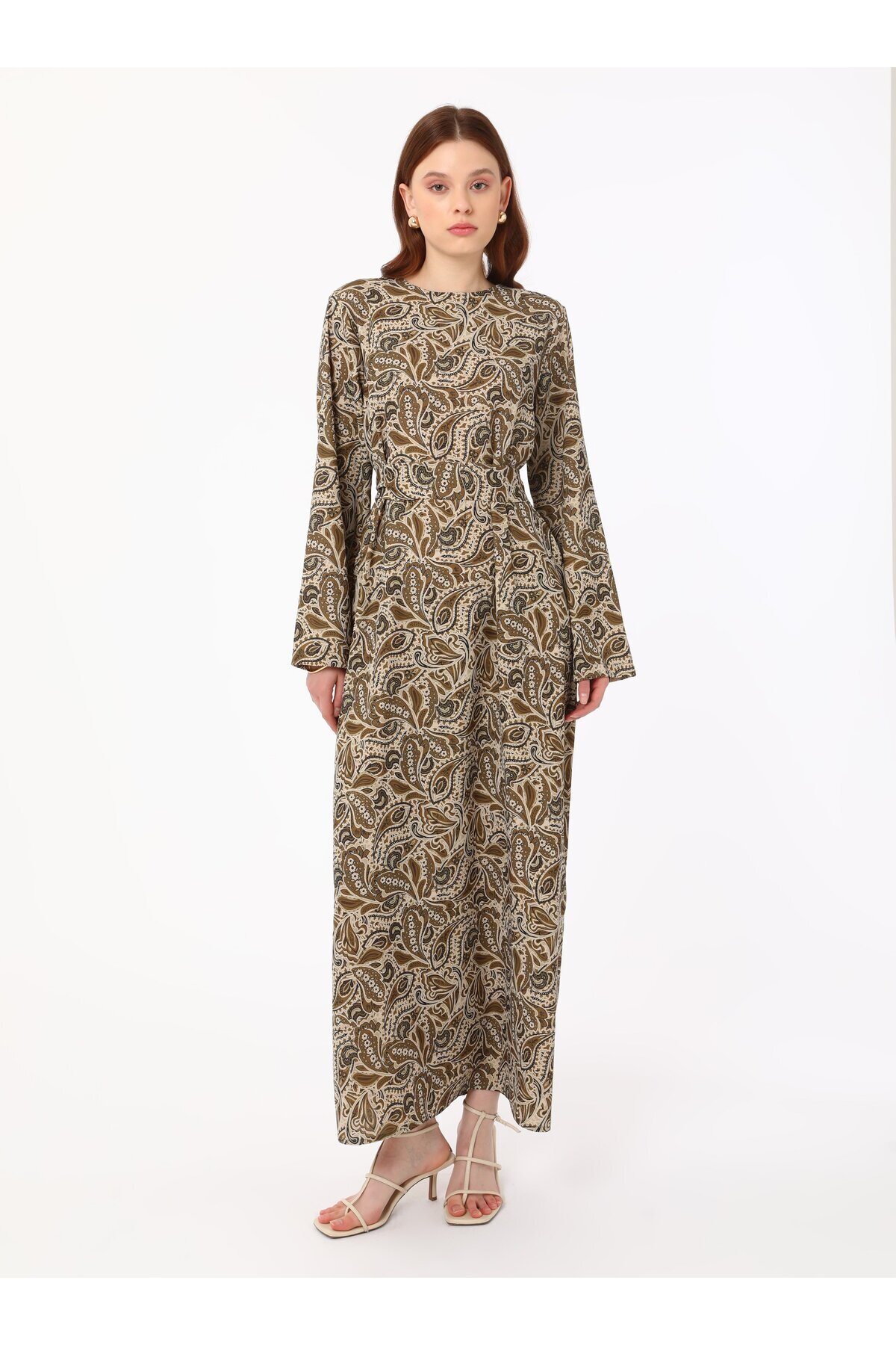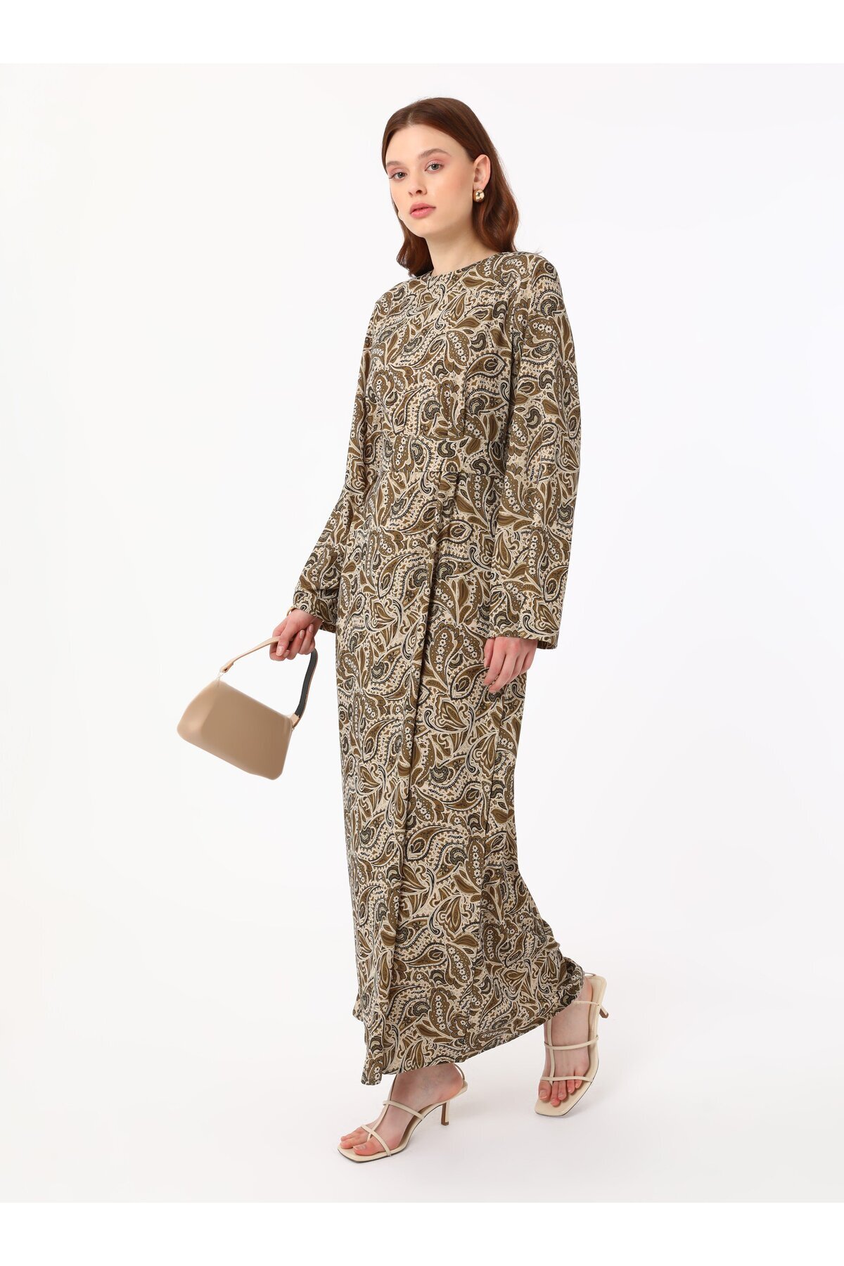 Yumuşak Tuşeli Bağlama Detaylı Şal Desenli Tesettür Elbise- Yumuşak Tuşeli Bağlama Detaylı Şal Desenli Tesettür Elbise- 9066117 46