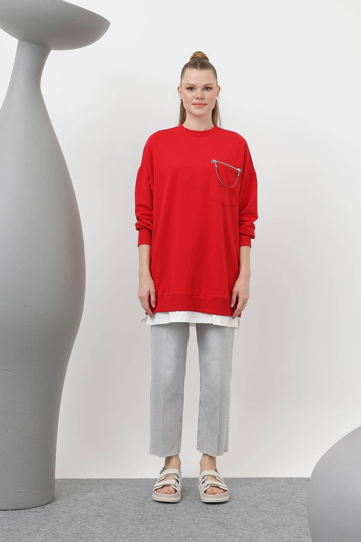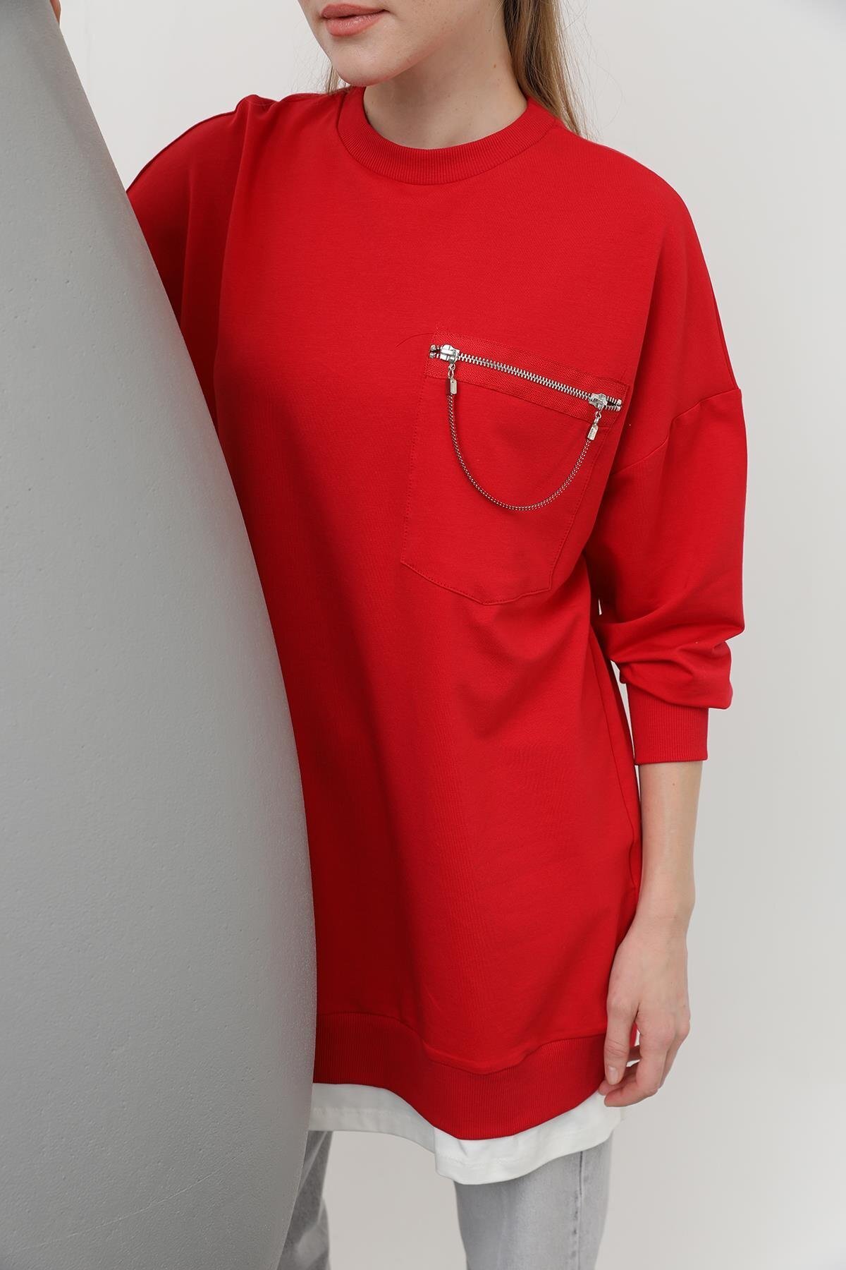 Kadın Önü Çift Taraflı Süs Fermuar Detaylı Tunik - 10620TUN - Kırmızı Kadın Önü Çift Taraflı Süs Fermuar Detaylı Tunik - 10620TUN - Kırmızı 25S-10620TUN L/XL