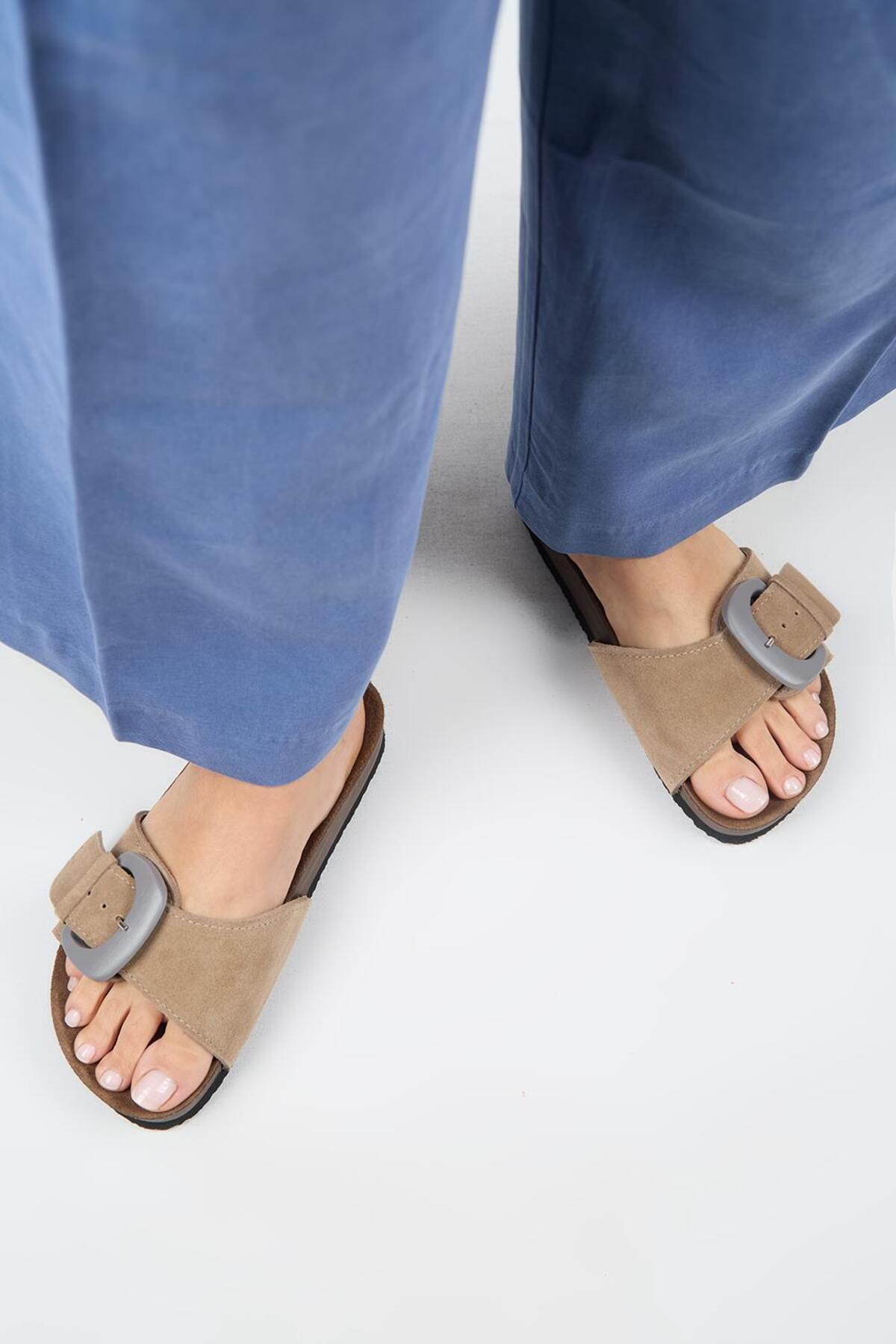 (Alandra 2 ) Kadın Hakiki Deri Tek Tokalı Vizon Terlik (Alandra 2 ) Kadın Hakiki Deri Tek Tokalı Vizon Terlik MNJ.194 41