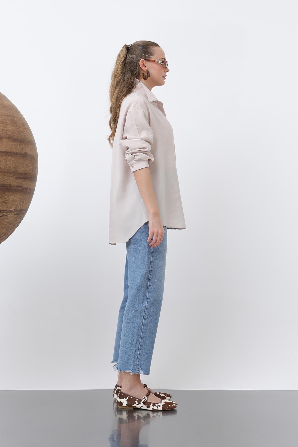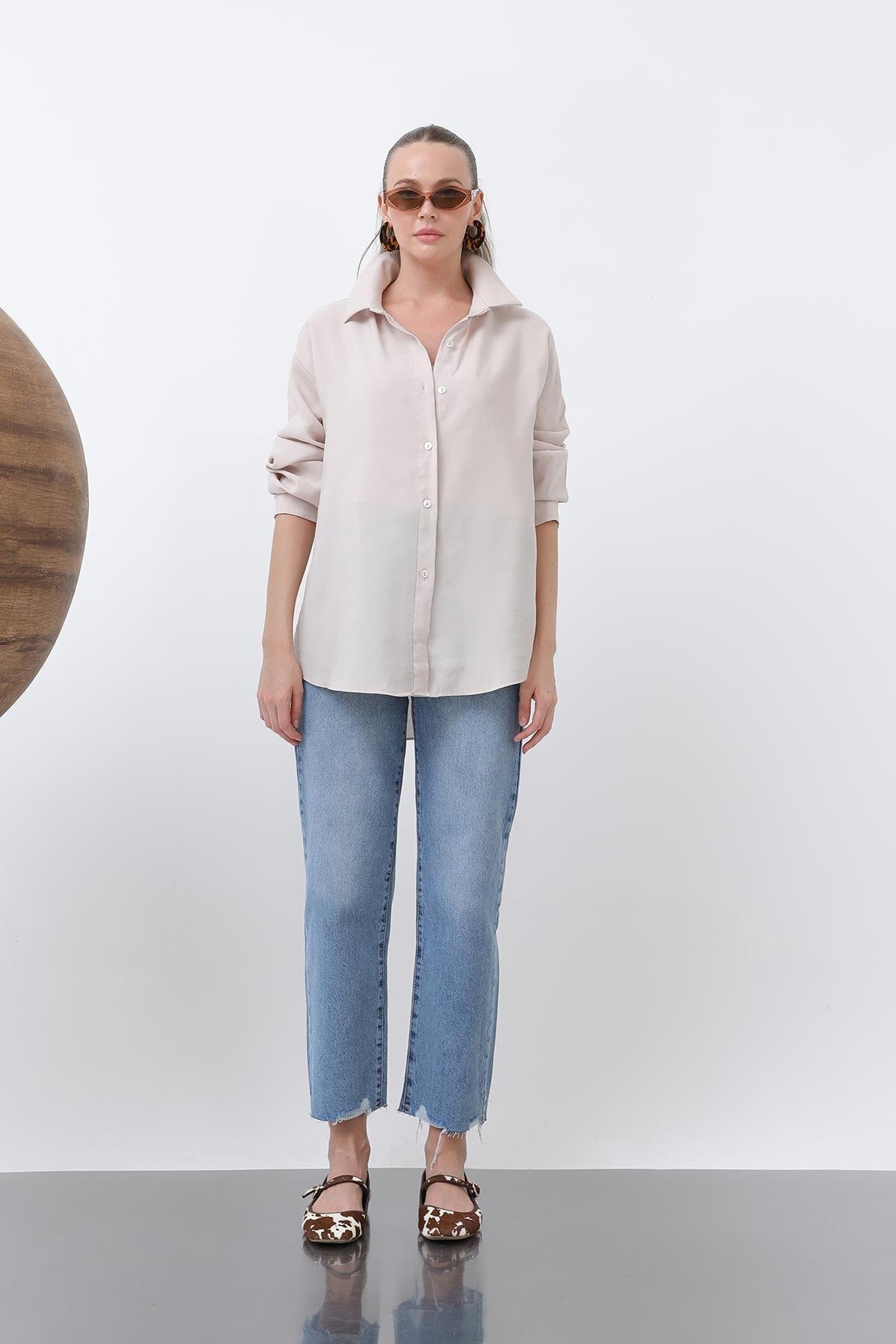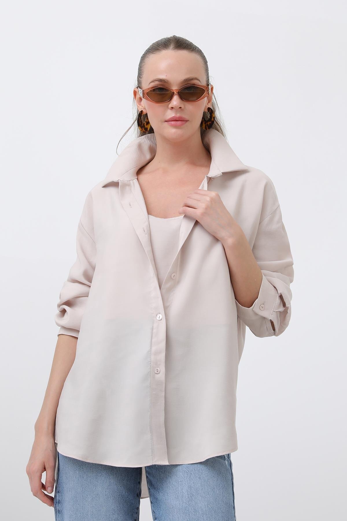 Kadın İçli Dışlı Basic Gömlek -32251GML - Bej Kadın İçli Dışlı Basic Gömlek -32251GML - Bej 25S-32251GML L/XL