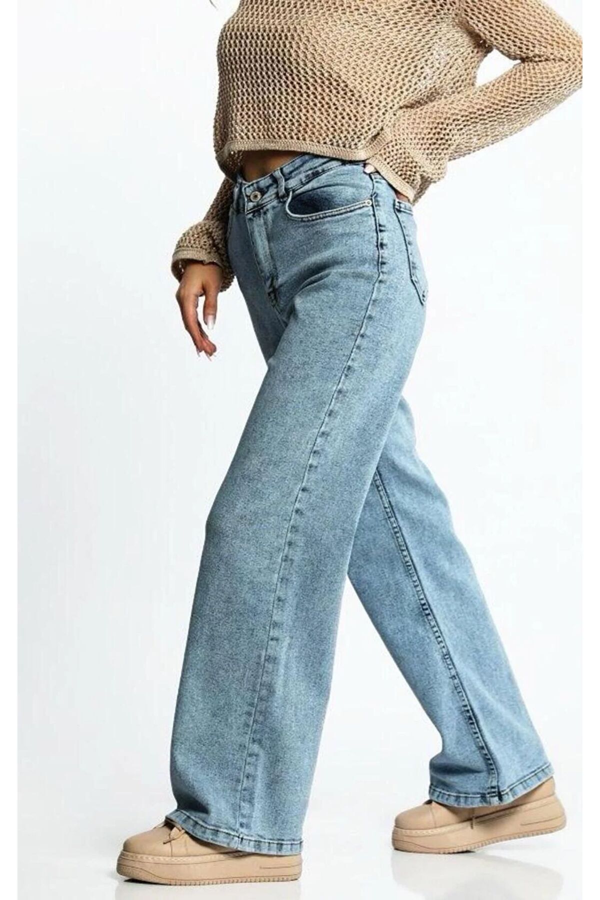 Karyıkama Açık Mavi Palazzo Yüksek Bel Esnek Kadın Pantolon 90's Straight Karyıkama Açık Mavi Palazzo Yüksek Bel Esnek Kadın Pantolon 90's Straight Kudi13051994 33