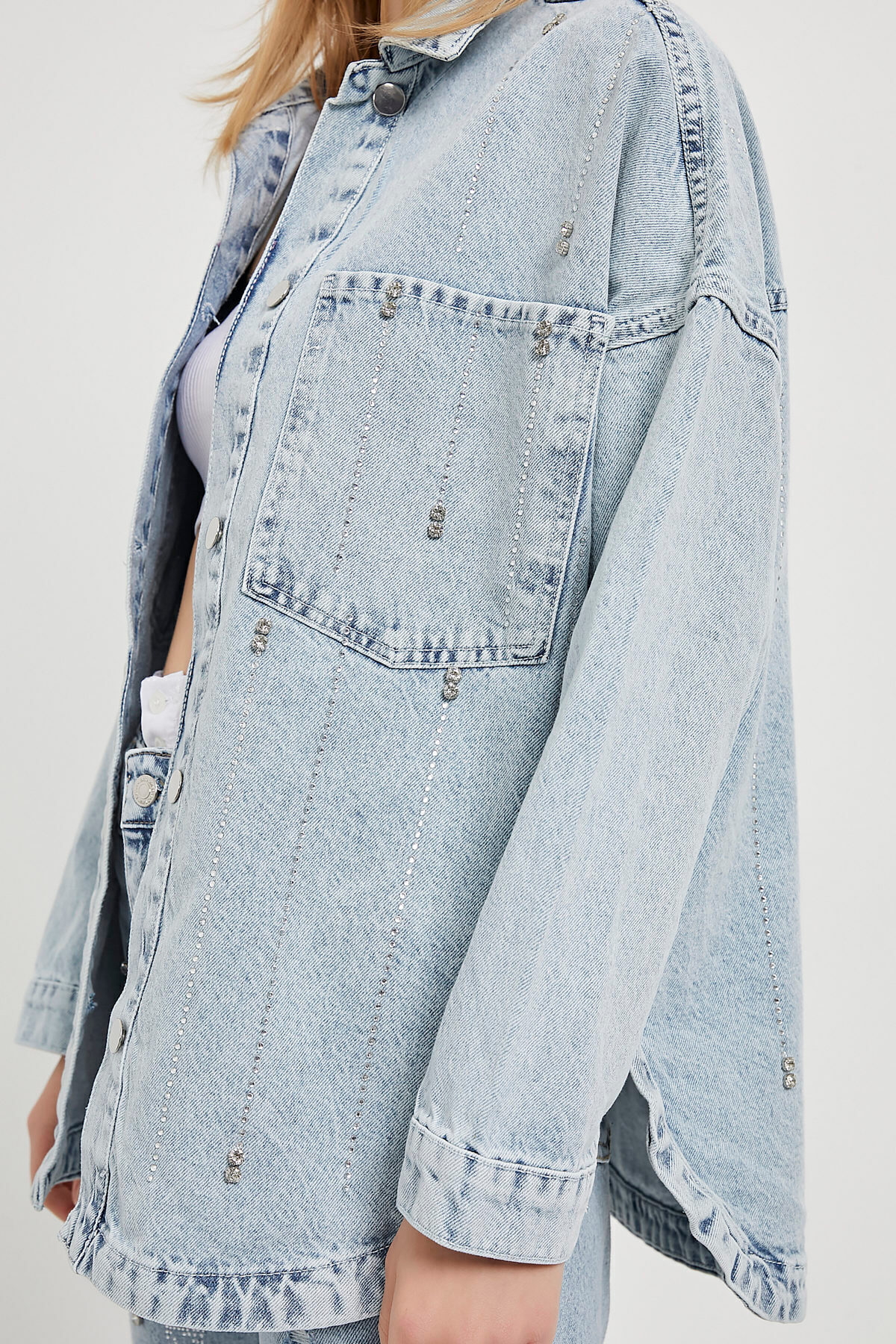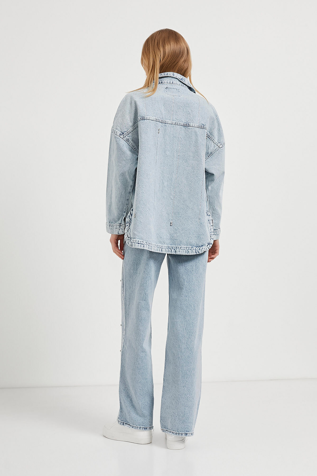 Kadın Damla Taşlı Oversize Buz Mavi Bol Kot Ceket Kadın Damla Taşlı Oversize Buz Mavi Bol Kot Ceket 602-5YB2800CKT L