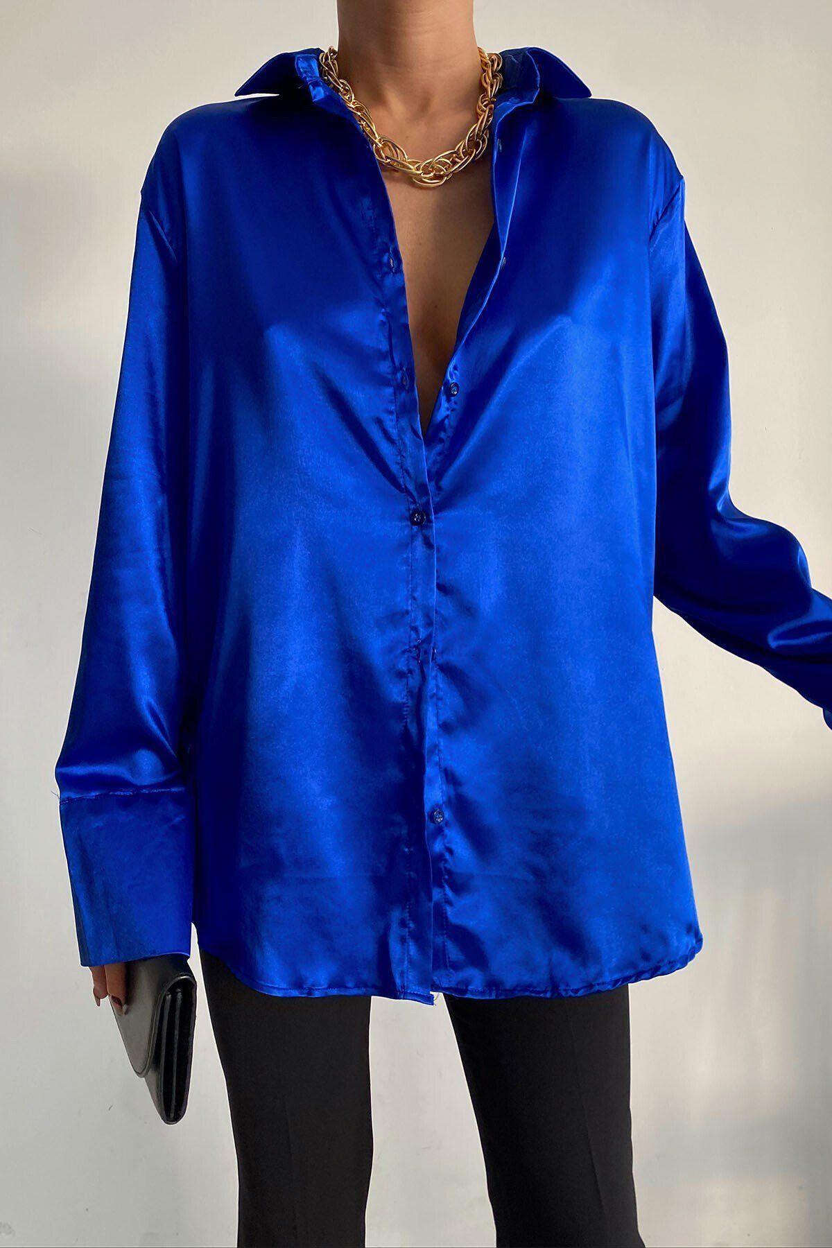 Saks Mavisi Saten Gömlek Saks Mavisi Saten Gömlek 056smsg XL