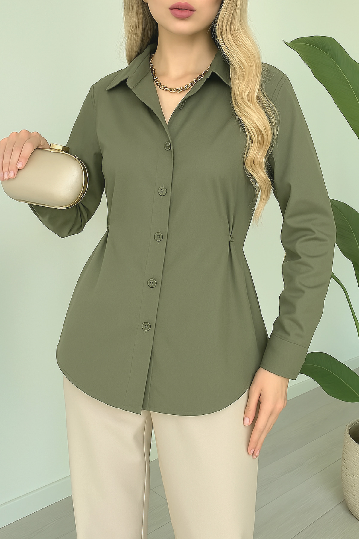 Yanları Düğme Detaylı Poplin Gömlek -Taş Yanları Düğme Detaylı Poplin Gömlek -Taş TY246-1625 42